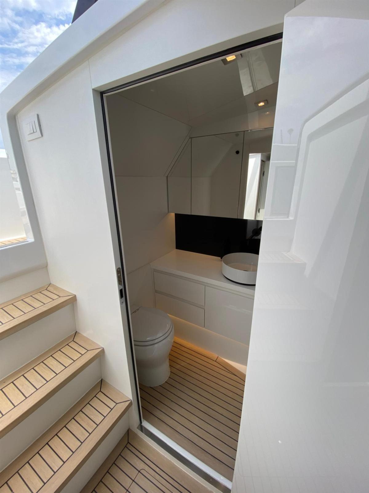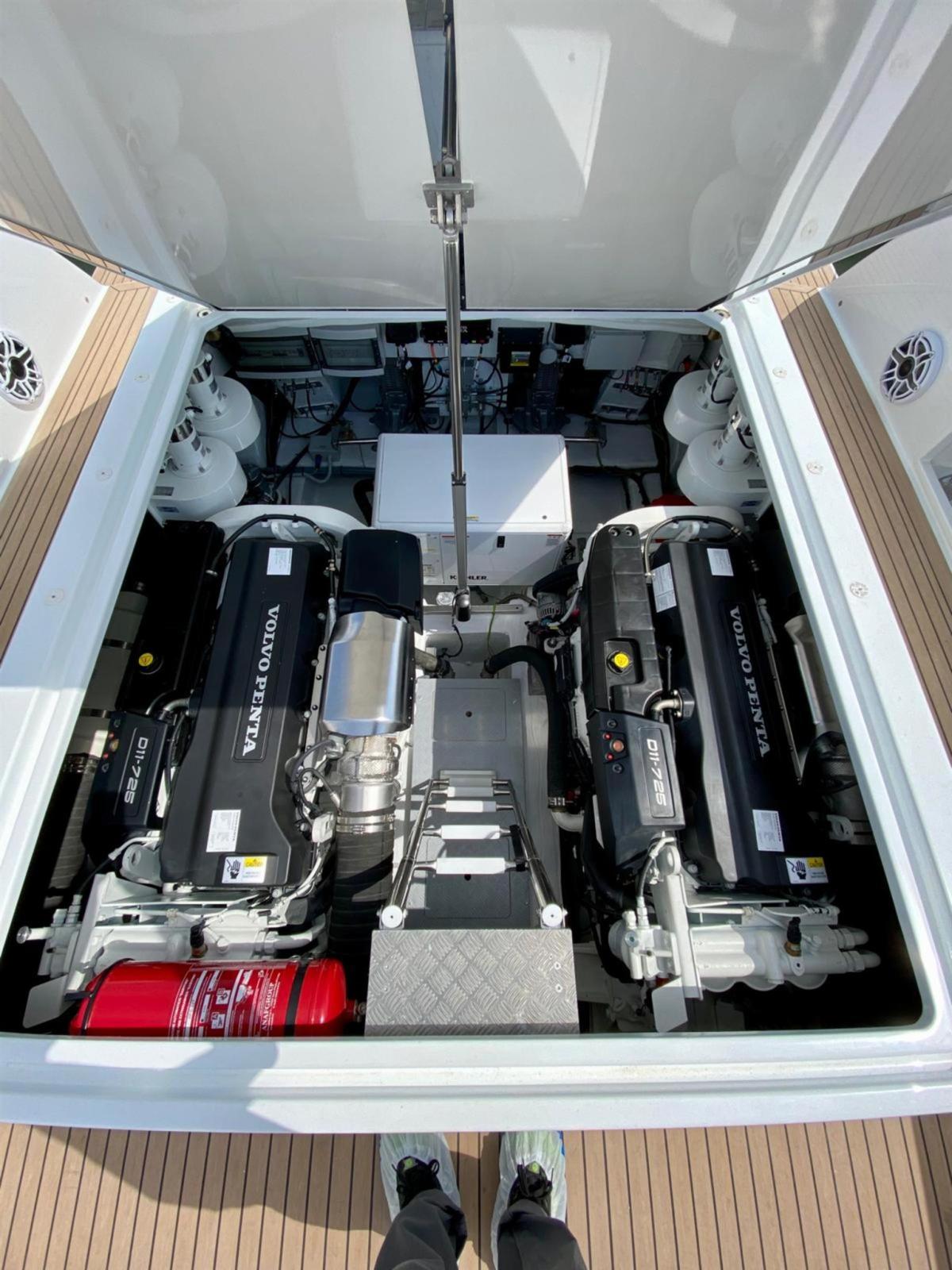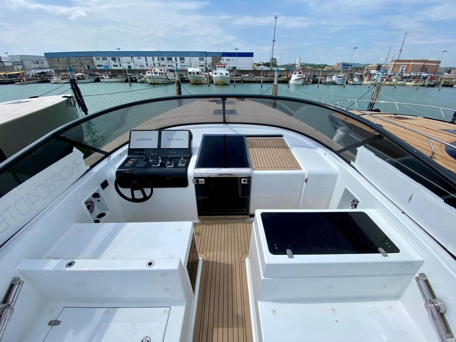Alarme gaz, Alarme moteur, Alarme de pompe de cale, Alternateur, Auto Dynamic Trim Interceptor, Eau sous pression, Trim hydraulique, Taquets pliants, Câble d’alimentation à quai, Douche de cockpit, Fixation de l’ancre, Extincteur(s) fixe(s), Éclairage de courtoisie, Moniteur de batterie, Défenses, Plateforme arrière, Pompe de cale automatique, Pont en teck, Porte latérale, Cockpit en teck, Prise de quai, Echelle de bain, table de cockpit, Corne.