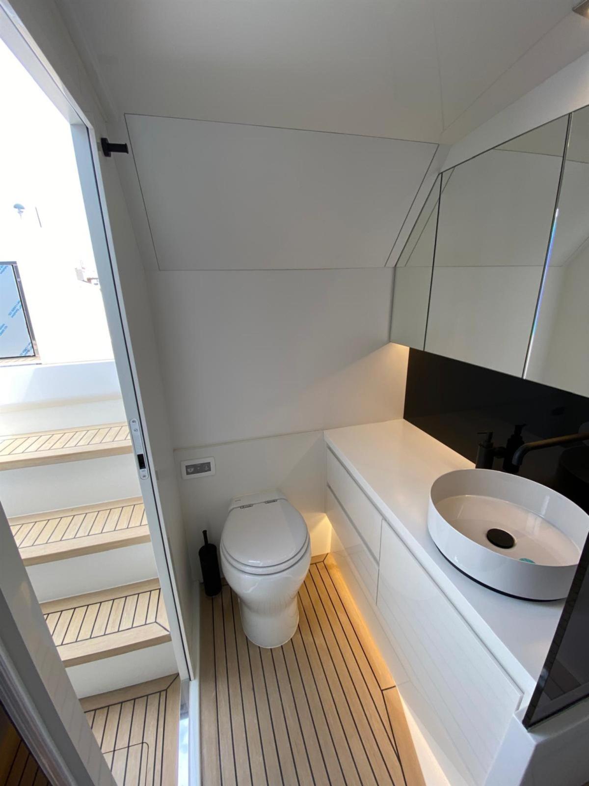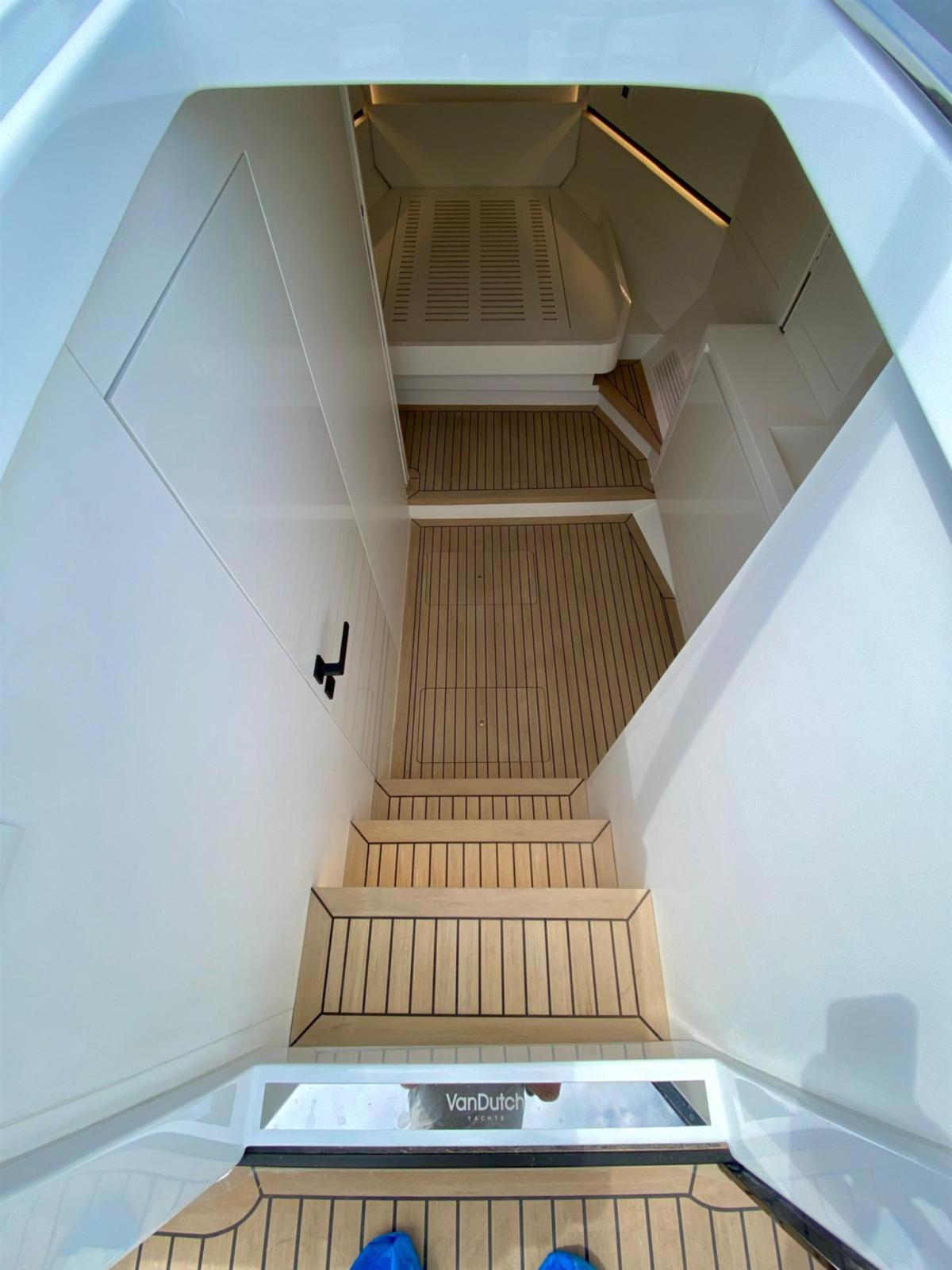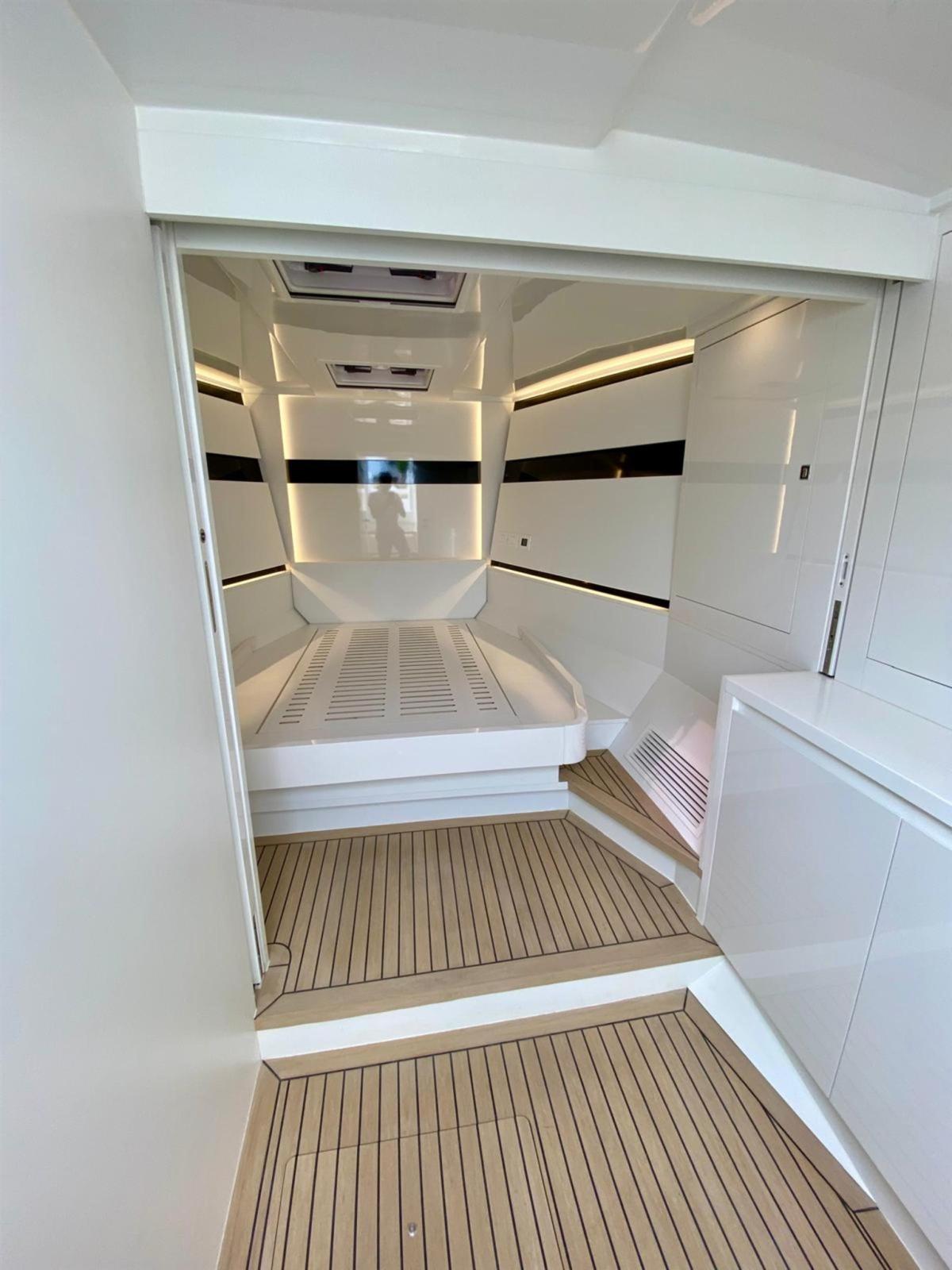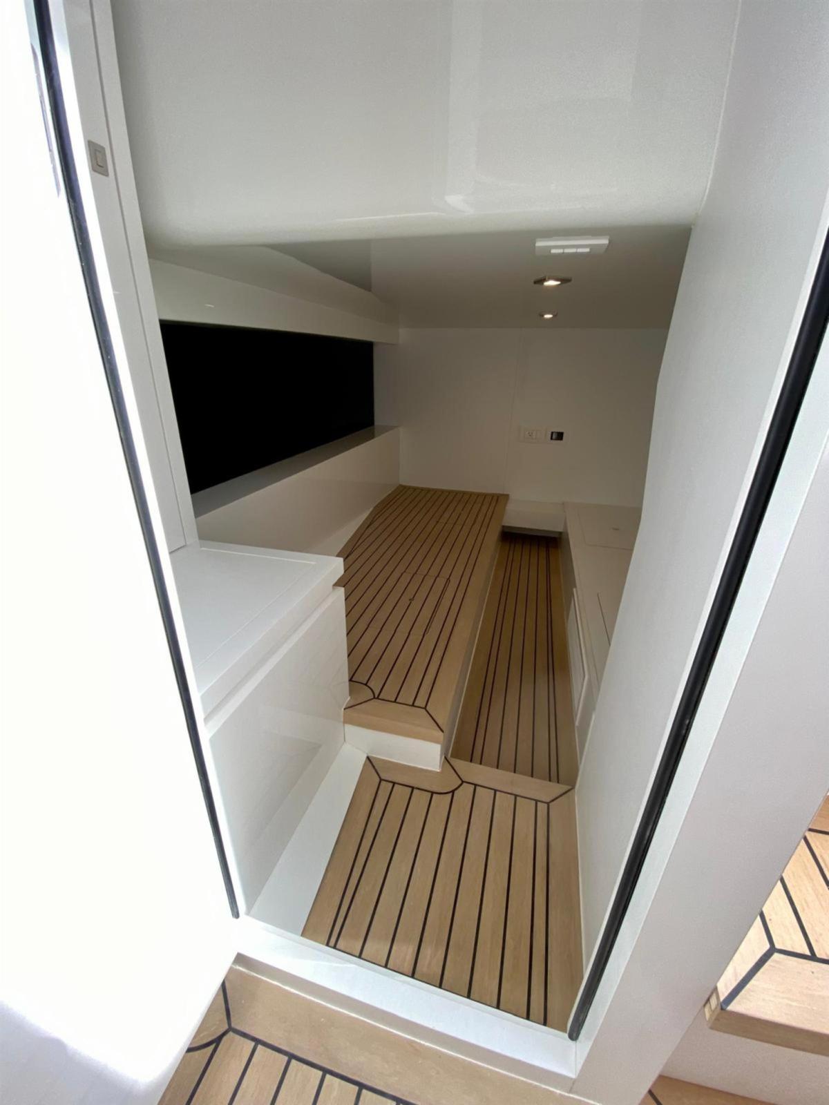 Sous le pont, l’intérieur perpétue la philosophie minimaliste avec des lignes épurées, des finitions haut de gamme et une disposition pratique garantissant à la fois confort et convivialité. Chaque détail a été soigneusement conçu pour créer une atmosphère raffinée et accueillante.