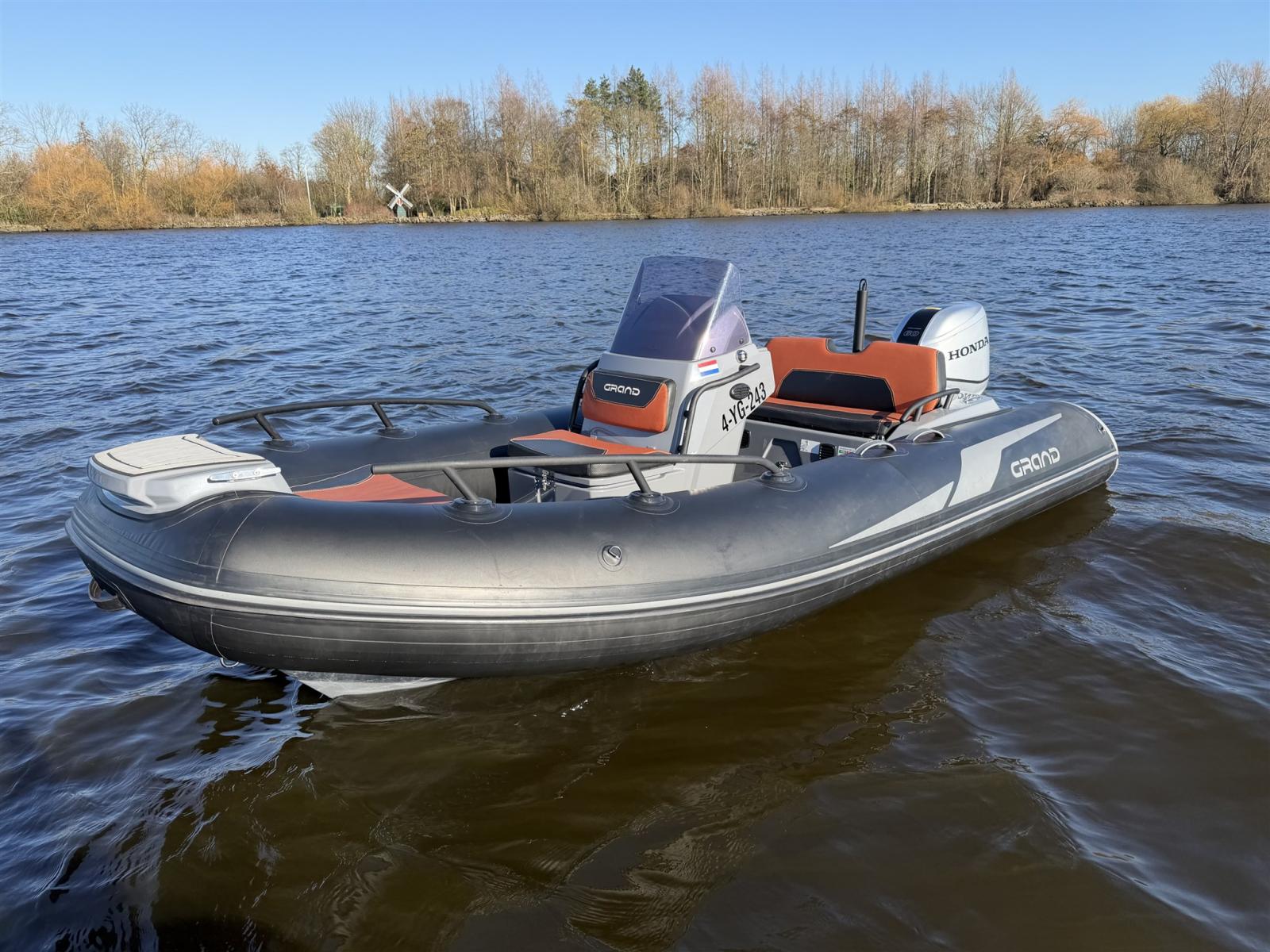 GRAND 420 Golden Line, finie dans un élégant schéma gris/noir et équipée d’une puissante Honda BF60. Ce paquet complet et très bien entretenu est en excellent état et prêt à naviguer.