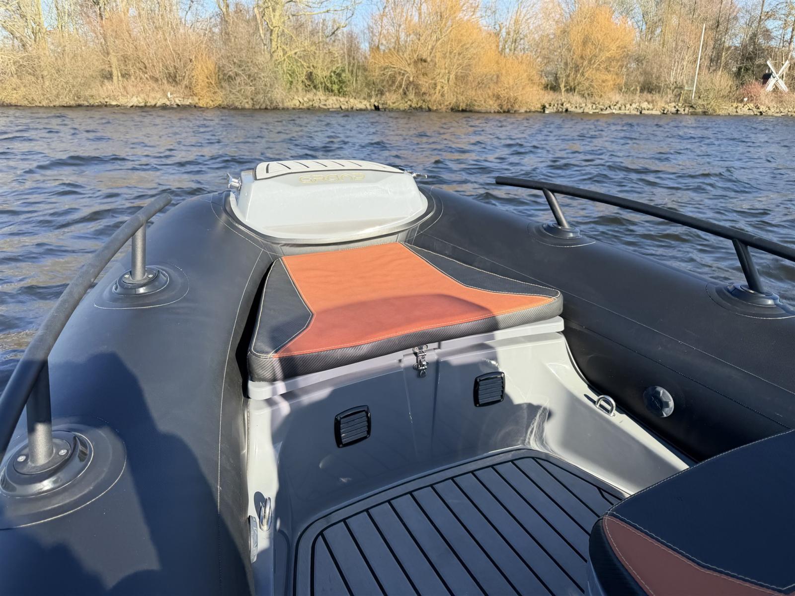 La coque en V profond garantit une tenue de route exceptionnelle, offrant une conduite stable et confortable même à haute vitesse. Combiné au moteur Honda à quatre temps fiable et économe en carburant, cela se traduit par de solides performances et une expérience de croisière silencieuse et fluide. Cette configuration rend le bateau parfaitement adapté à la fois à une croisière détendue et à un usage sportif.