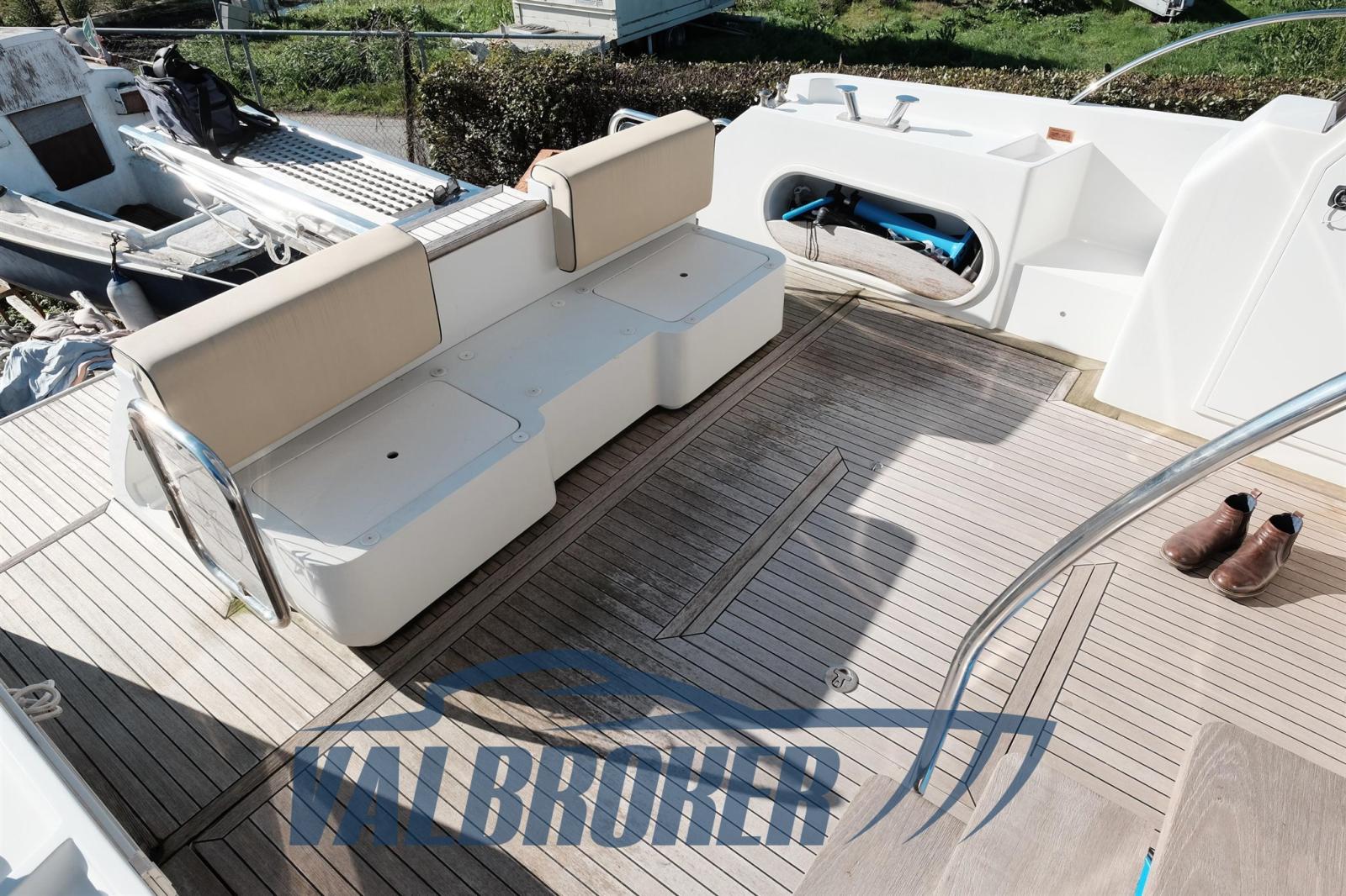 Eau sous pression, Douche de cockpit, Spots sous-marins, Passerelle (teak), Plateforme arrière (teak, estesa), Porte latérale, Cockpit en teck, Guindeau électrique, Table pliante de salon, Winch électrique arrière.