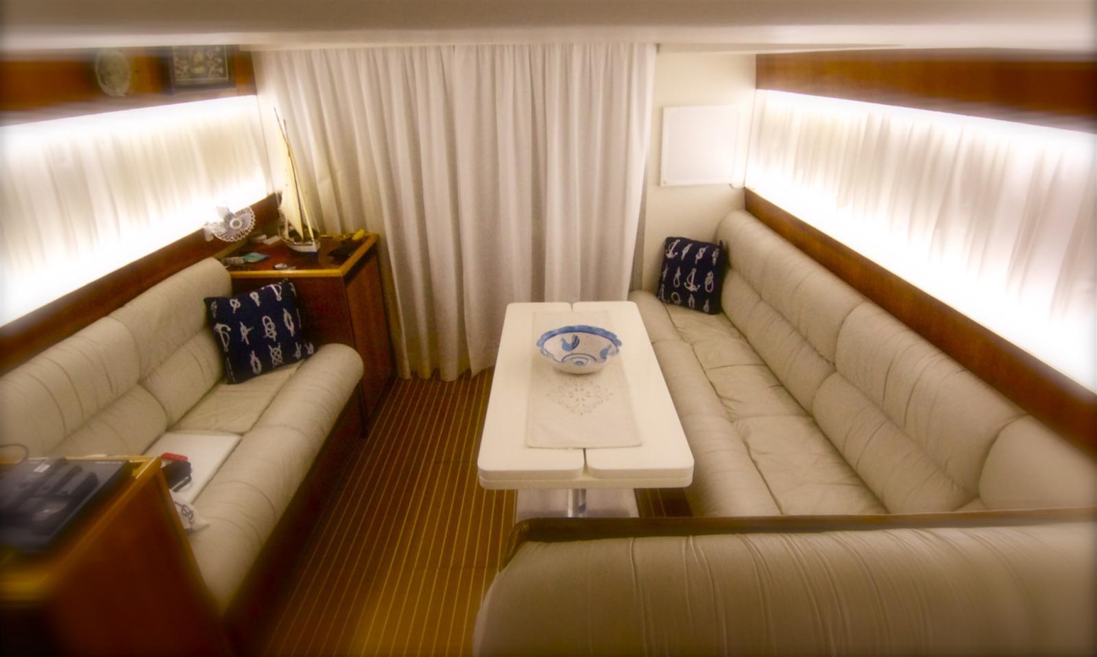 Bimini (maggiorato sul Fly), Taud de cockpit (nuovo), Coussin avant, Sellerie de fly, Matelas (nuovi in cabina ospiti), Taud de fly, Taud de console, Taud de soleil (oscurante Fly, 3 pezzi), Rideaux.