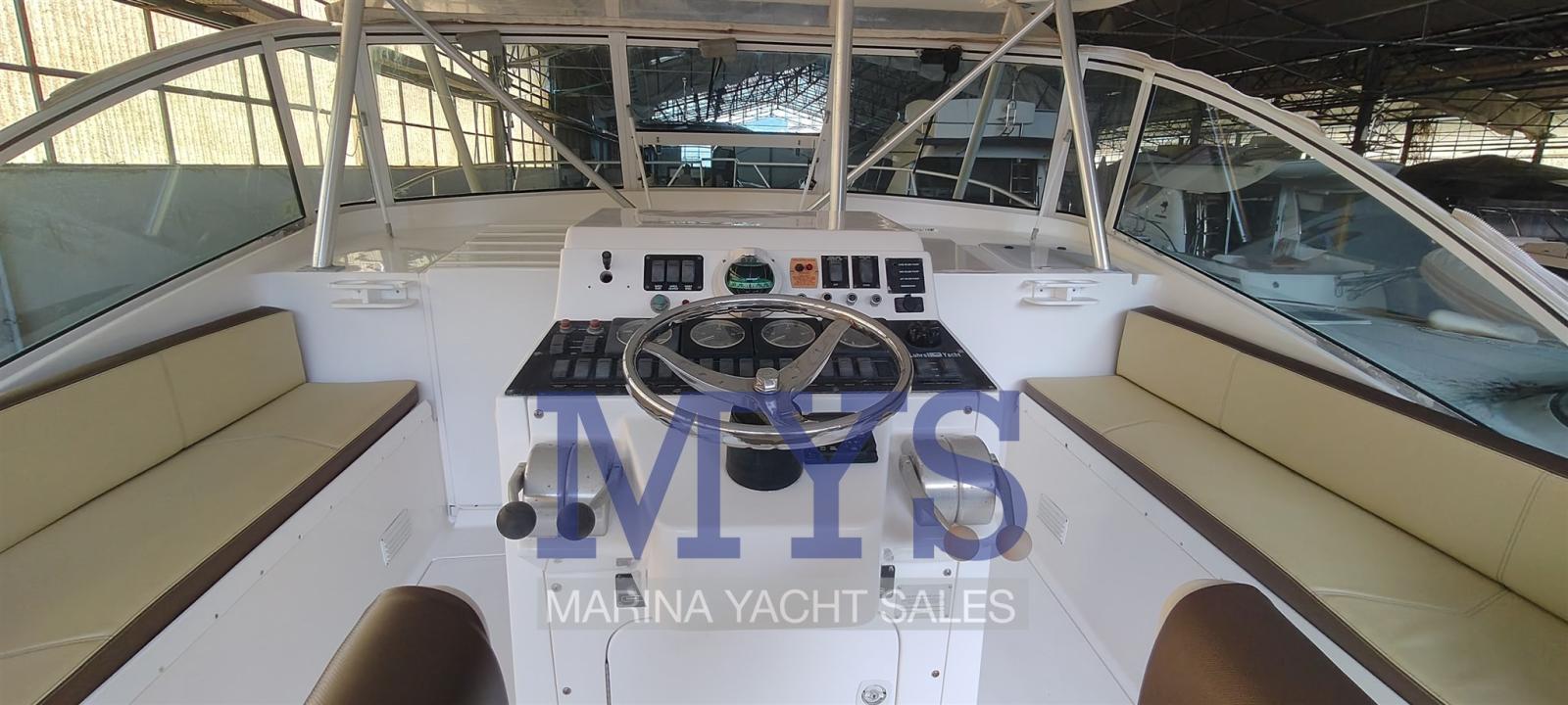 Alarme gaz, Alarme moteur, Alarme de pompe de cale, Alternateur, Ouverture du compartiment moteur électrique, Eau sous pression, Câble d’alimentation à quai, Couleur spéciale, Douche de cockpit, Double barre à roue, Phares fixes arrière, Flaps hydrauliques, Extincteur(s) fixe(s), Indicateurs de flaps, Lavage de chaine, Lavabo dans le cockpit, Éclairage de courtoisie, Passerelle (idraulica besenzoni), Plateforme arrière, Pompe de Lavage du Pont, Porte latérale, Prise de quai, Répétiteur électronique, Guindeau électrique, Echelle de bain, Système de filtration des eaux usées, Table pliante de salon, Corne, T-Top.