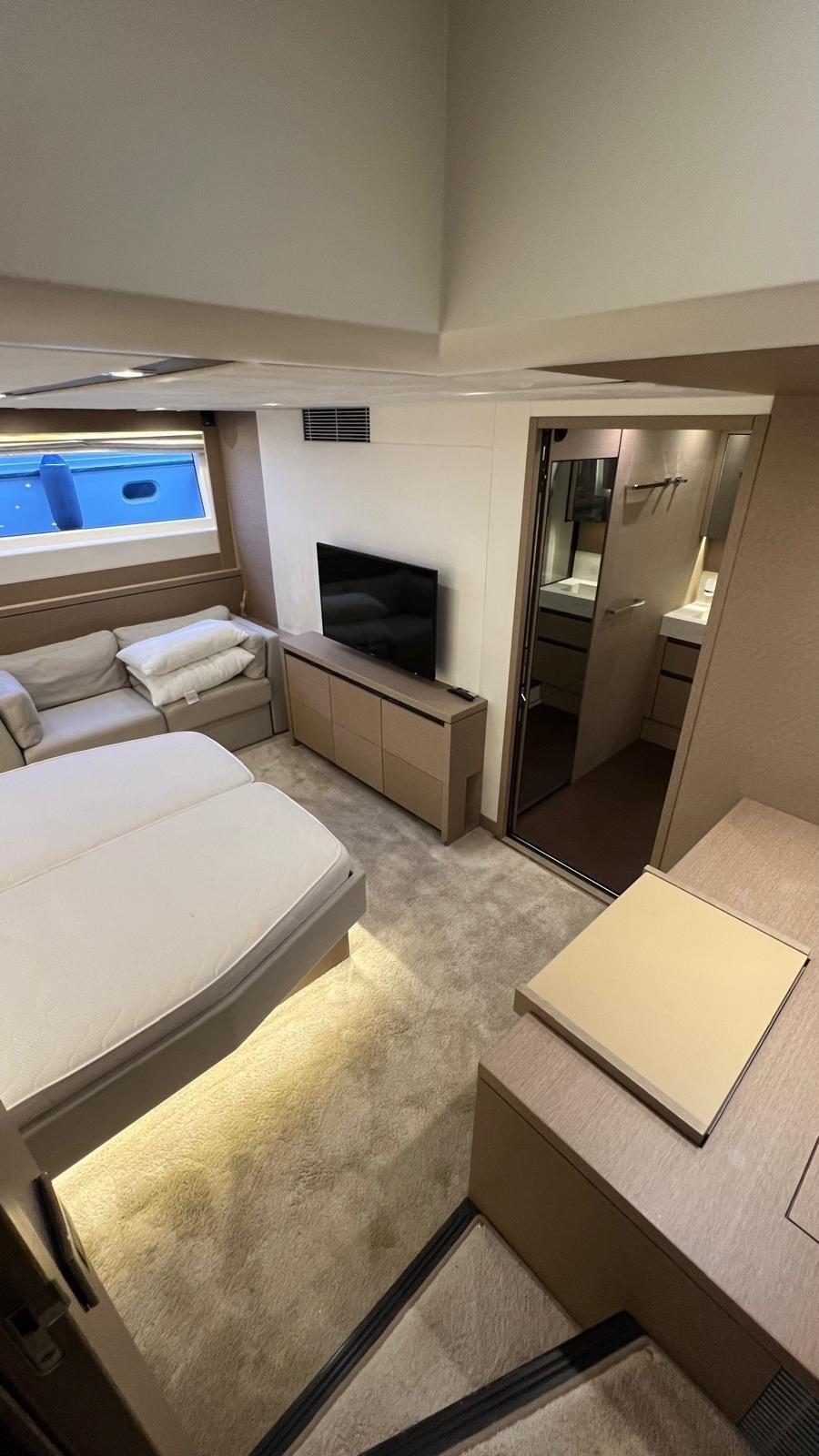 Ce navire élégant paraît rapide, mais l’accent est mis sur le confort de croisière. Deux Volvo Penta IPS 950 lui confèrent une vitesse maximale respectable de près de 30 nœuds avec une excellente réponse des gaz et une sensation sportive, bien que le bateau soit silencieux à l’intérieur comme à l’extérieur.