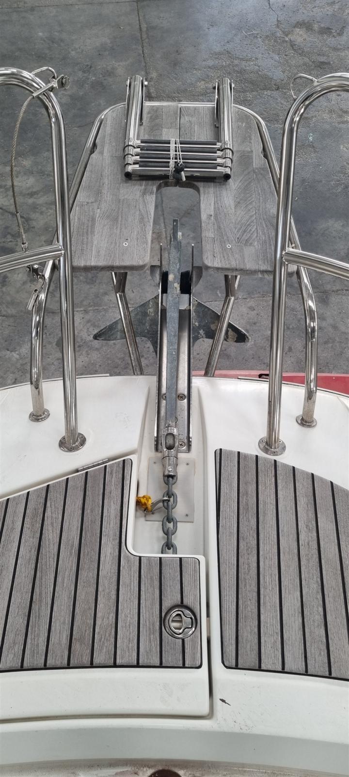 Alarme moteur, Eau sous pression, Passavant en teck, Douche de cockpit, Extincteur(s) fixe(s), Lavabo dans le cockpit, Éclairage de courtoisie, Passerelle, Cockpit en teck, Prise de quai, Guindeau électrique, Echelle de bain, table de cockpit, T-Top.