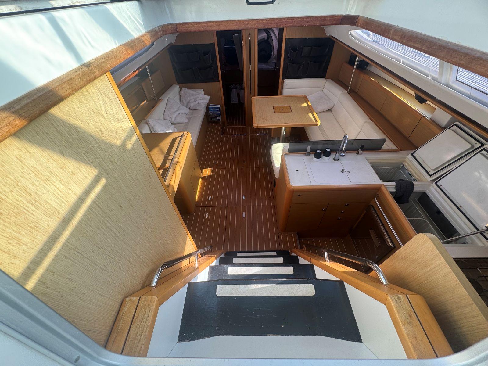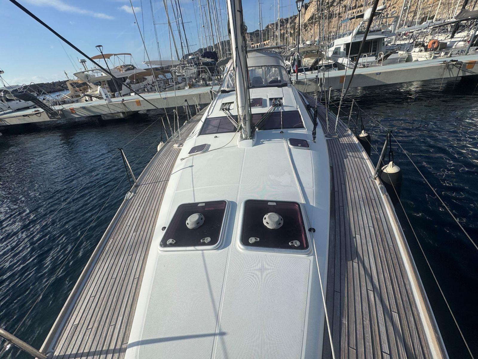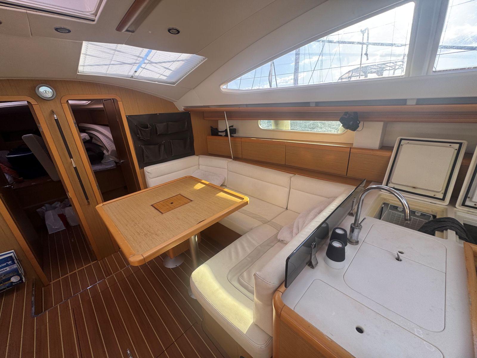 Pour une navigation fluide et accessible, SUN ODYSSEY 50DS, est équipé de voiles sur enrouleur, winch électrique de roof, propulseur étrave, rendant les manœuvres simples et sereines. Un équipement de confort et de vie à bord complet (groupe électrogène, chauffage air pulsé, dessalinisateur, lave linge séchant ) pour ce voilier élégant et performant pour des croisières hauturières.