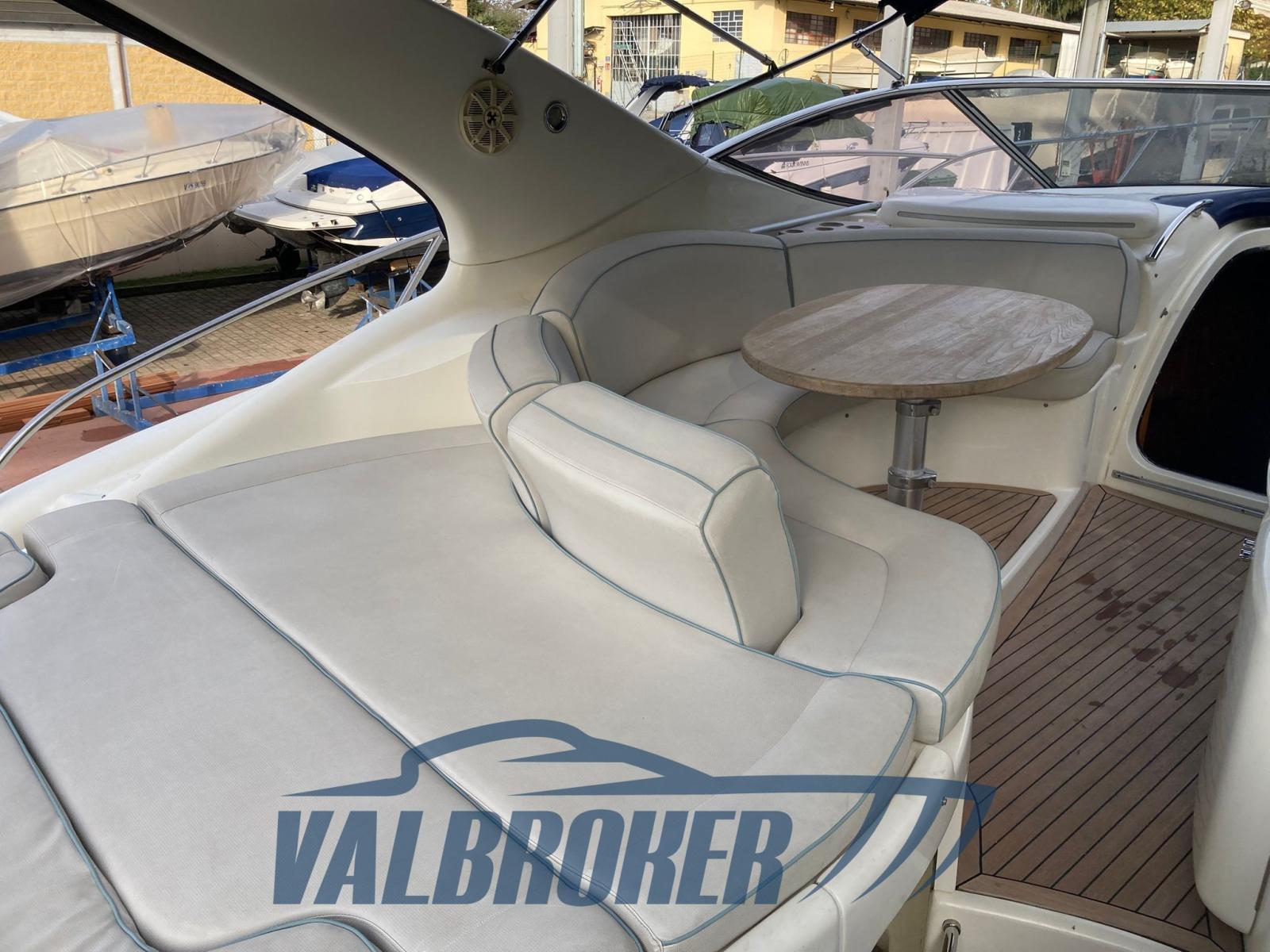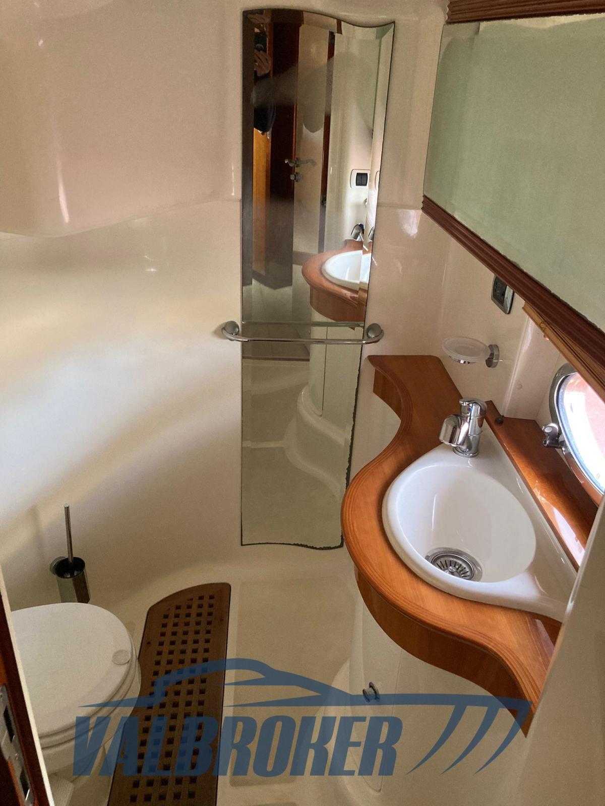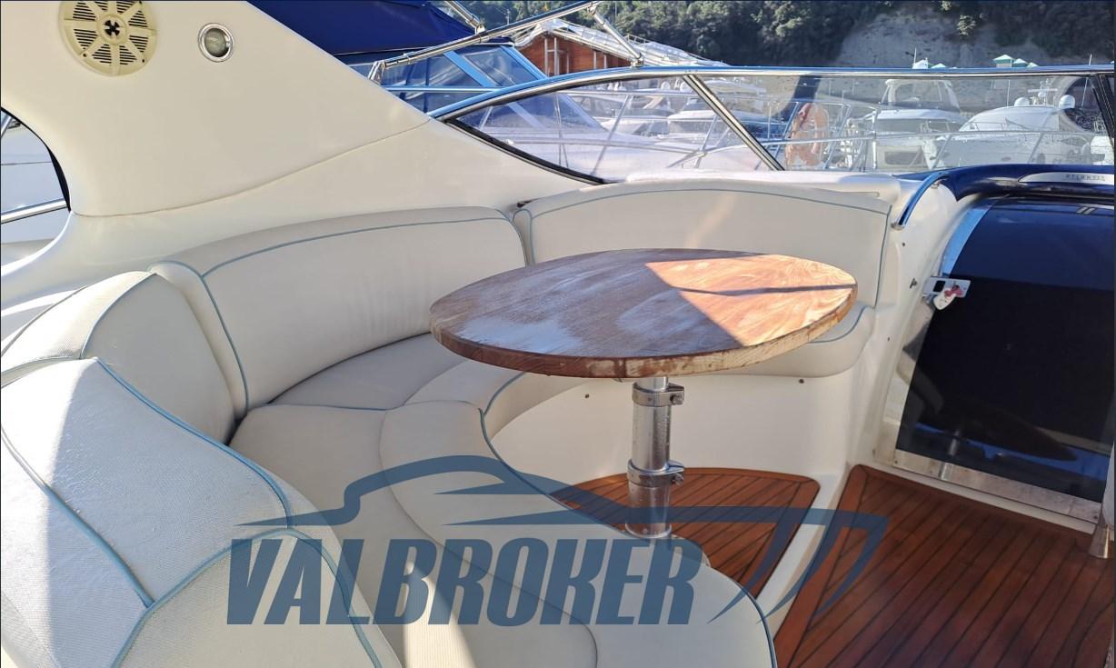 Confortable et pratique, ouvert et bien conçu dans le cockpit avec garage tender et passerelle hydraulique rétractable. Deux cabines doubles et deux salles de bain. Propulsé par un Volvo Penta 6 cylindres turbo diesel KAD 300 DP-G. Actuellement visible à sec sur le lac Majeur.