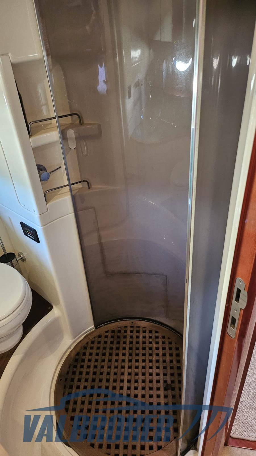Eau sous pression, Couleur spéciale (murate blu), Douche de cockpit, Phare de poursuite (con comando a distanza), Garage à annexe (con apertura elettrica), Lavabo dans le cockpit, Passerelle (idraulica a scomparsa), Plateforme arrière (teak), Cockpit en teck, Rollbar, table de cockpit (teak).