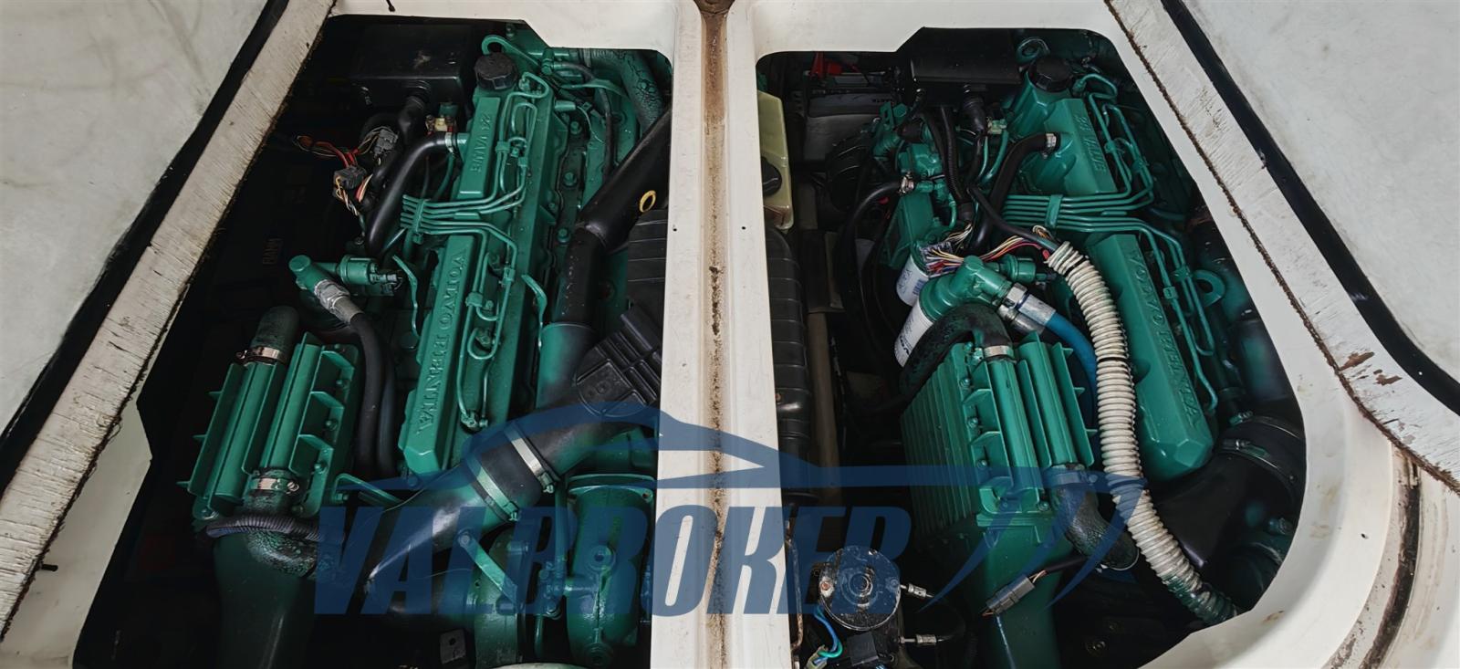 Entre 2021 et 2023, des entretiens extraordinaires ont été effectués sur les moteurs et les transmissions : les transmissions arrière ont été remplacées, les injecteurs révisés, remplacés les échangeurs. Plateforme en teck 2024. Les moteurs ont été déchargés et ramenés à zéro heure par un atelier agréé Volvo Penta Motonautica Cuneo (tous documentés), depuis lors seules 350 heures ont été effectuées. 2026 : Rina a été renouvelée jusqu’en 2031. Remplacement de l’extincteur dans le compartiment moteur et d’un robinet de générateur.