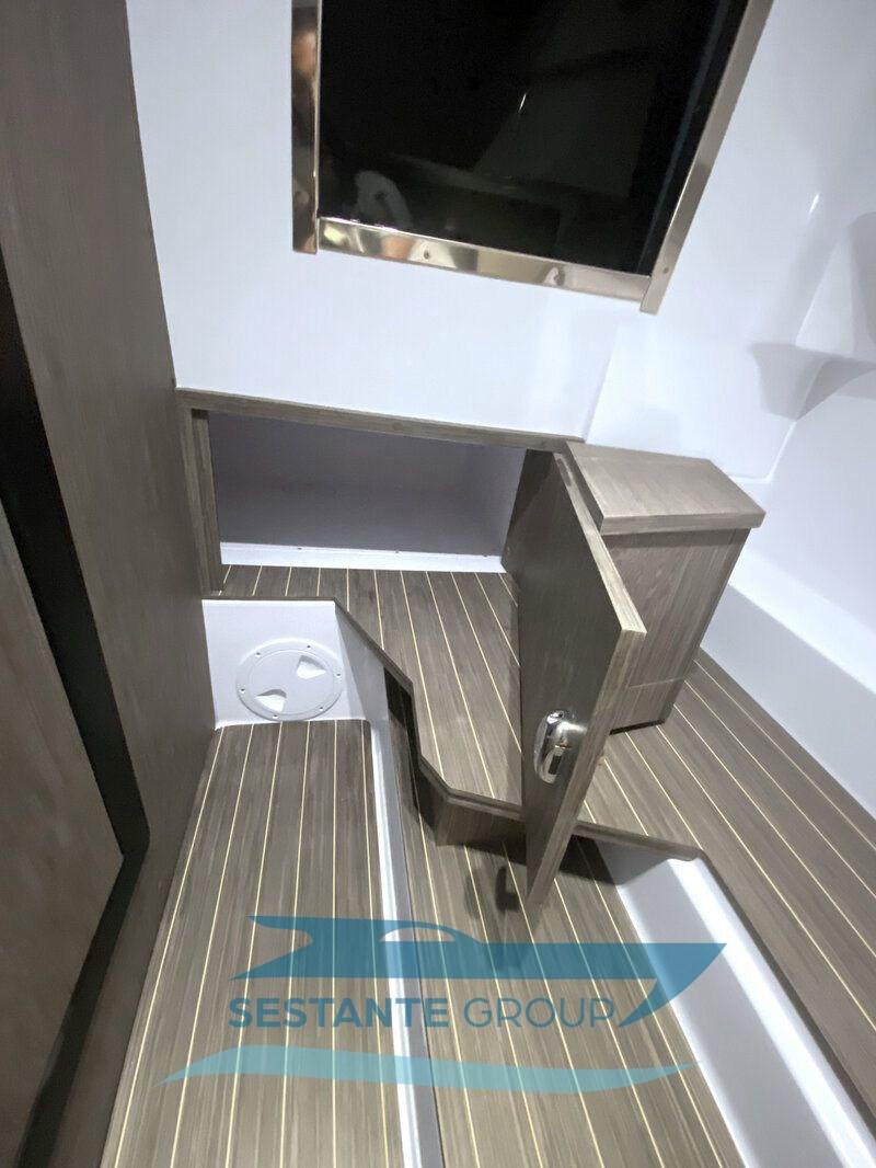 Alarme moteur, Aspiration des Eaux Usées depuis le Pont, Eau sous pression, 3 Batteries, Câble d’alimentation à quai, Filères, Douche de cockpit, Lavabo dans le cockpit, Éclairage de courtoisie, Pompe de Vidange du Réservoir d’Eaux Usées, Pompe de cale automatique, Pont en teck (Seadeck), Cockpit en teck (Seadeck), Prise de quai, Rollbar, Guindeau électrique, Echelle de bain, Table, table de cockpit, Corne.