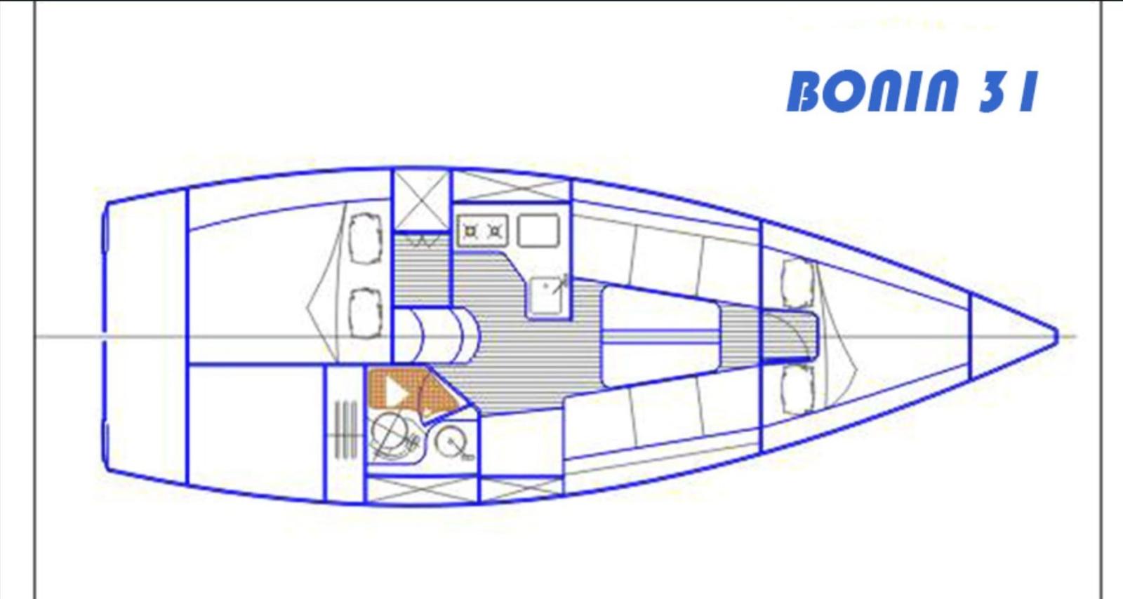 Bonin 31 de 2016, conception de yacht Cossutti, bateau de sport dédié à la performance : proue verticale, poupe ouverte, pont effilé. Coque et pont intégrés en sandwich avec infusion sous vide fonctionnent en solide. Plan de voile : 58 m², 3 tonnes de poids, très rapide par vent faible mais aussi calme par vent fort car il est équipé d’une ampoule en T avec un tirant d’eau de 2 m pour presque une tonne. Carapaces en aluminium Dynema 2025 à hauban, foc d’enroulement sous le pont. Lombardini 20 HP 2016, 500 heures d’entretien en continu, trois batteries 2025, voiles de croisière 2016 équipées de grand-voile dacron, full batten à sommet carré, foc dacron, spi d’entraînement et gennaker avec chaussette, sac paresseux. Voiles de régate noire 2016 foc moyen lourd, foc léger 2024, grand-voile semi-battée et spi tout au long du foc léger moyen 2025. Perche de spinnaker et montants en beauprés en carbone dans les chantiers navals Bonin d’origine. Lignes droites et circuit de spi 2024. Équipement de pont Antall. Rapide à un moin. Table interne TEAC entièrement amovible. Pilote automatique st2000+, traceur Raymarine Élément 7 avec cartographie méditerranéenne, station éolienne et instruments répéteurs de mât Garmin, tous dans le réseau nmea2000. Icône VHF corrigée. Équipements à moins de 50 miles 6p Raft, y compris la révision de 2026. Deux pompes de cale électriques et une manuelle, la préparation de l’autoclave et de la chaudière, un réfrigérateur et une cuisine à deux brûleurs, un éclairage LED et des prises USB à la carte et dans les cabines doubles avant et arrière. Diesel 70 litres, deux réservoirs d’eau de 100 litres. Ancre delta 10 kg, chaîne de 25 mètres 8 mm et corde de 35 mt pour treuil. Ancre de secours, gouvernail de rechange, hélice, hélice de gouvernail pliante. Auvent sur la bôme avec des fermetures éclair sur le sac paresseux et plus encore. Livraison possible en Méditerranée à convenir.