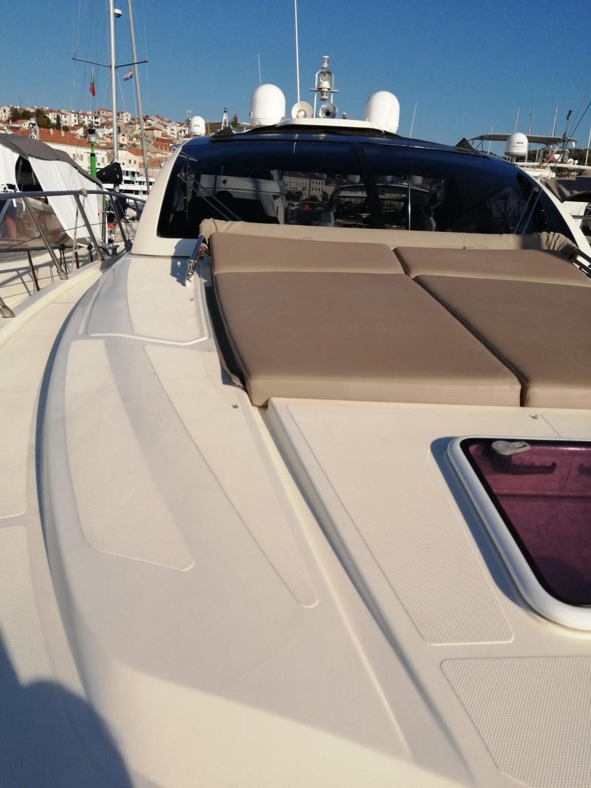 Alarme moteur, Alarme de pompe de cale, Eau sous pression, Douche de cockpit, Hard top, Lavabo dans le cockpit, Spots sous-marins, Moniteur de batterie, Passerelle (IDRAULICA A SCOMPARSA), Pompe de cale automatique, Cockpit en teck, Prise de quai, Connexion eau sous pression à quai, Guindeau électrique, Echelle de bain, table de cockpit.