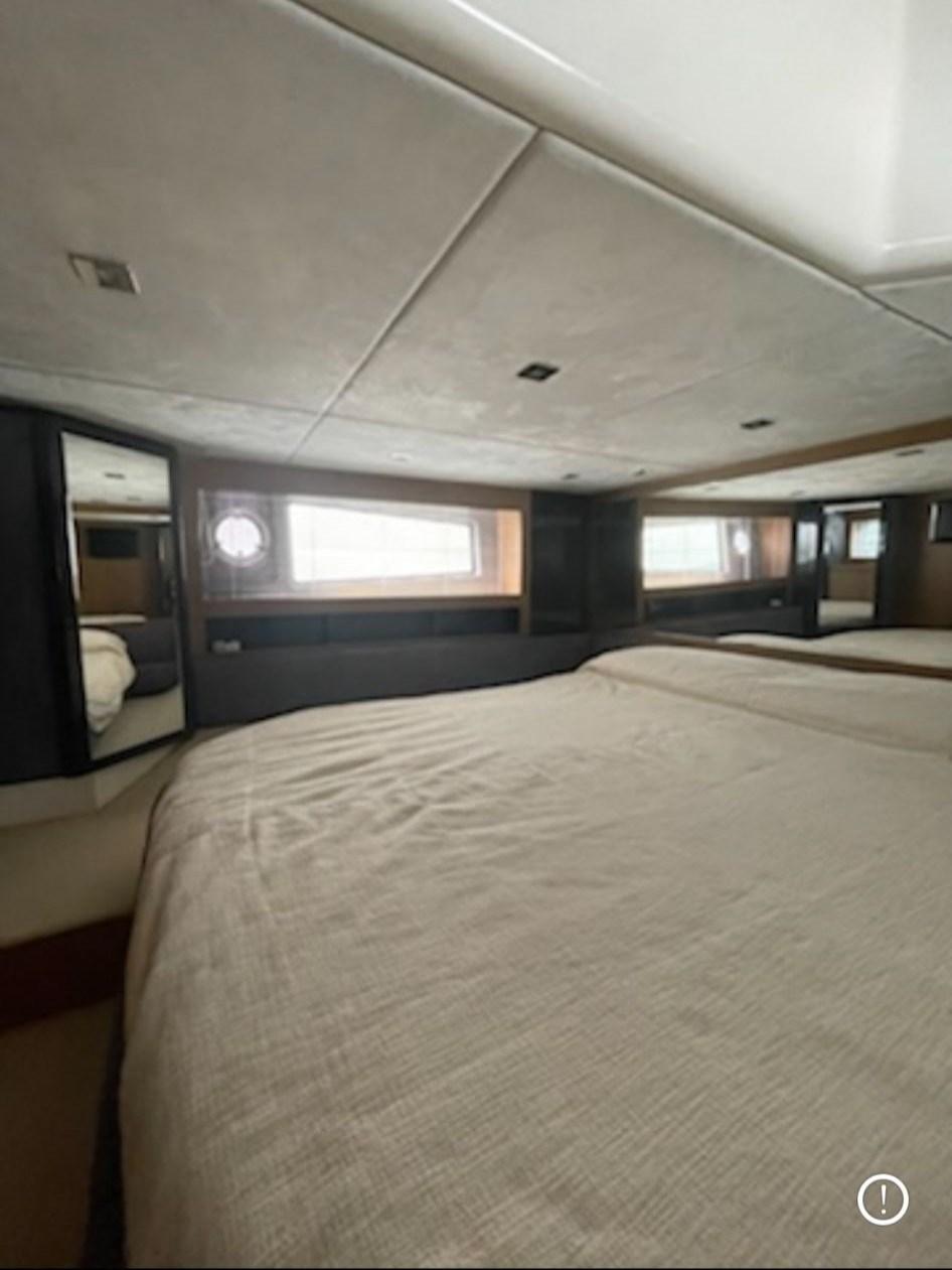 CABINE PRINCIPALE PLEINE POUTRE AU CENTRE DU NAVIRE AVEC LIT DOUBLE ET SALLE DE BAIN ATTENANTE AVEC CABINE DE DOUCHE