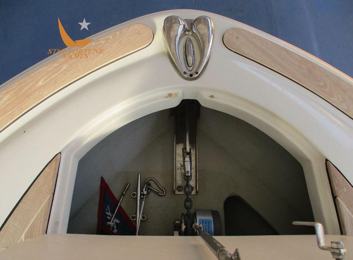 Alarme gaz, Ouverture du compartiment moteur électrique, Eau sous pression, Taquets pliants, Passavant en teck, Douche de cockpit, Spots sous-marins, Pompe de cale manuelle, Cockpit en teck, Guindeau électrique, Echelle de bain, table de cockpit (smontabile), Corne.