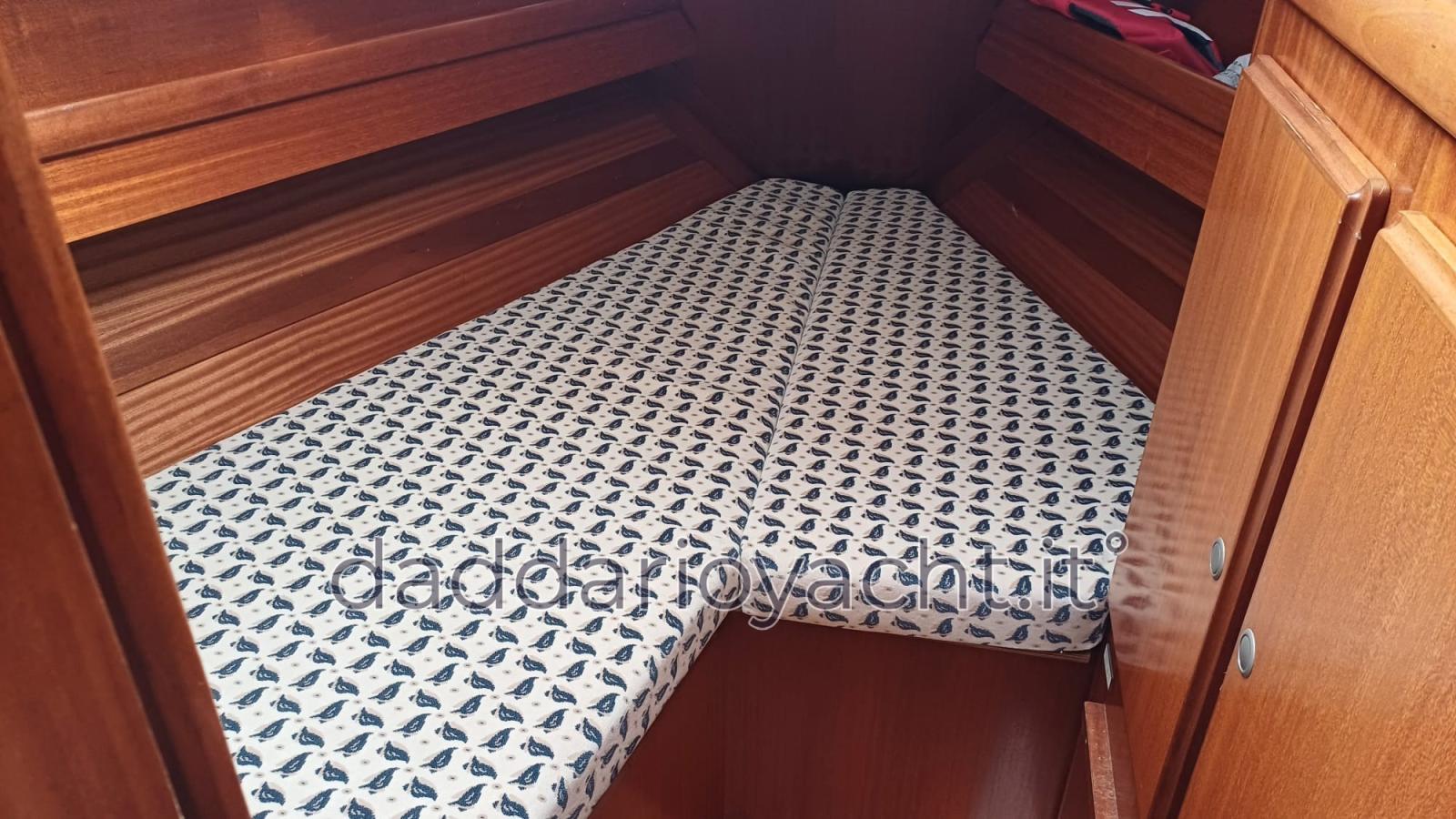 Alarme moteur, Eau sous pression, 3 Batteries (2x140 motore + 1 servizi), Douche de cockpit, Bossoir pour HB, Éclairage de courtoisie, Panneau solaire, Pompe de cale manuelle, Prise de quai, Connexion eau sous pression à quai, Onduleur, Guindeau électrique, Echelle de bain, Chaise support HB, table de cockpit, 3 Winch.