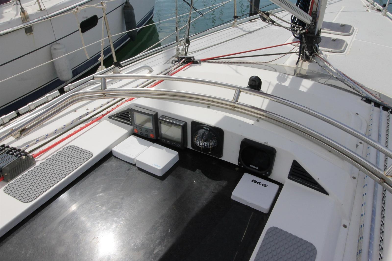 GPS (Raymarine A60), Pilote automatique (barre franche avec calculateur ST4000 déporté), Radio VHF (portable), Sondeur, Anémomètre/Girouette (à finir d'installer ( B&G anémomètre + tridata)).