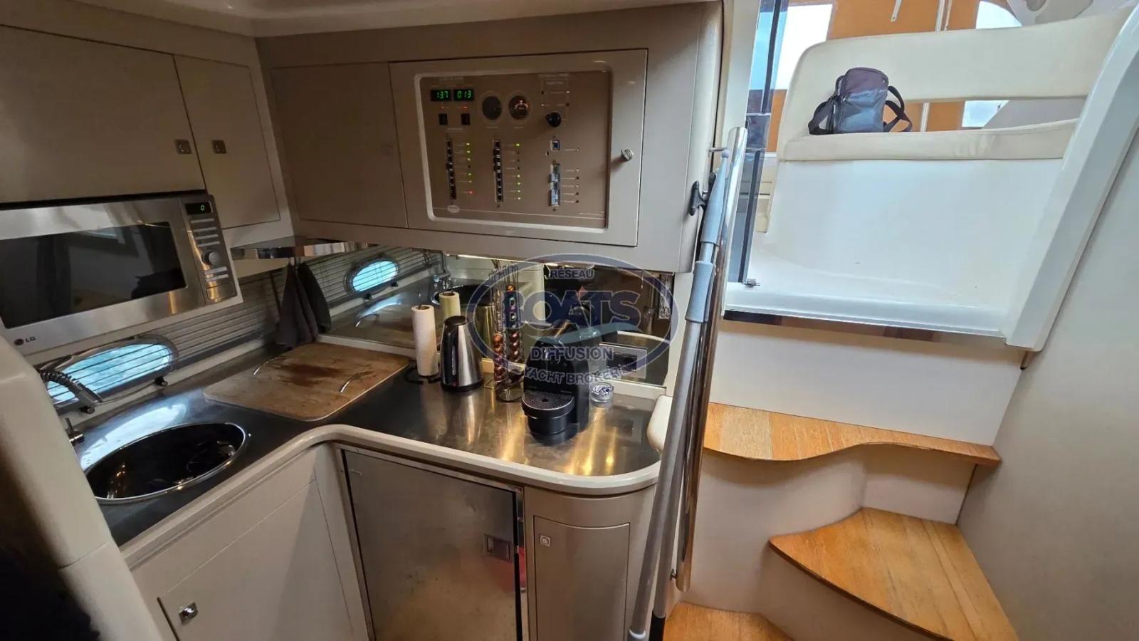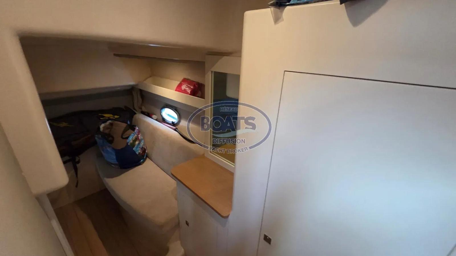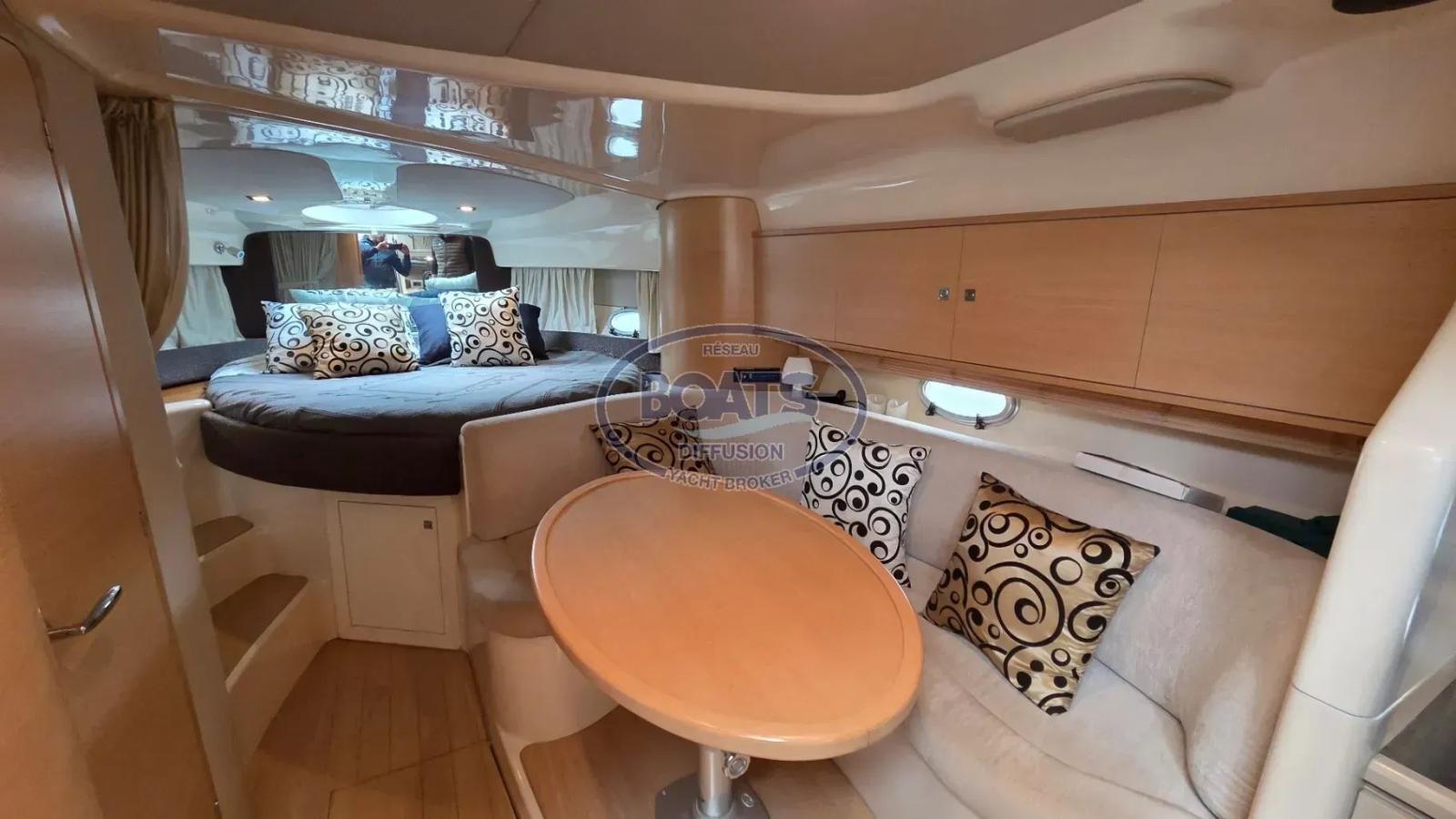 A l'intérieur, bel espace, Salon cuisine, avant grand lit double sur l'avant,