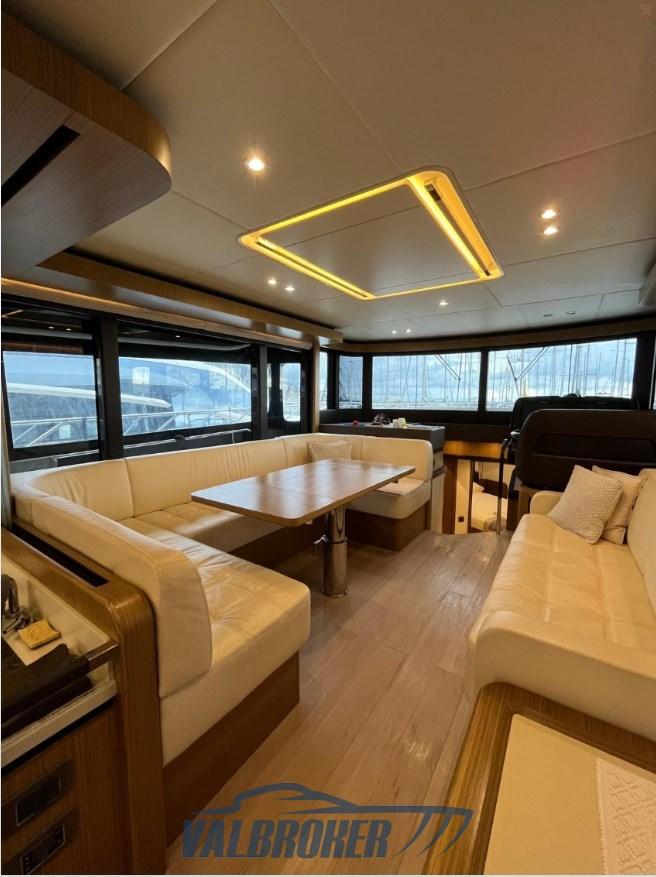 Eau sous pression, Passavant en teck, Câble d’alimentation à quai, Couleur spéciale (rosso), Douche de cockpit, Double barre à roue, Phares fixes arrière, Flaps électriques, Extincteur(s) fixe(s), Indicateurs de flaps, Lavage de chaine, Éclairage de courtoisie, Spots sous-marins, Moniteur de batterie, Passerelle, Plateforme arrière, Porte latérale, Porte latérale, Cockpit en teck, Prise de quai, Connexion eau sous pression à quai, Guindeau électrique, Echelle de bain, Stabilisateurs (Gyro 5 Seakeeper), table de cockpit, Corne, T-Top, Winch électrique arrière.