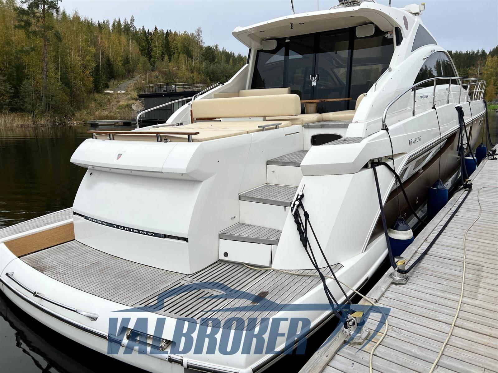 Magnifique Fairline Targa 64 GT de haute qualité. De grands espaces très lumineux. Allée d’arbre 2x1100 MAN v10. Bateau sur un lac en Finlande, utilisé en eau douce à virages bas. Cabine principale pleine largeur avec salle de bains, deuxième cabine double à l’avant, troisième cabine avec lits jumeaux. TVA européenne payée. Full optionnel : climatisation, propulseur d’étrave et de poupe, pilote automatique, GPS, groupe électrogène.