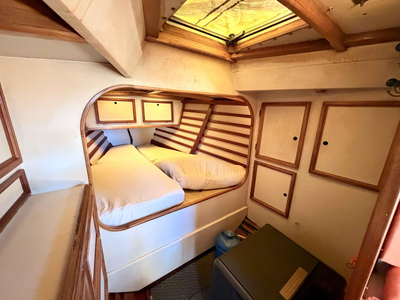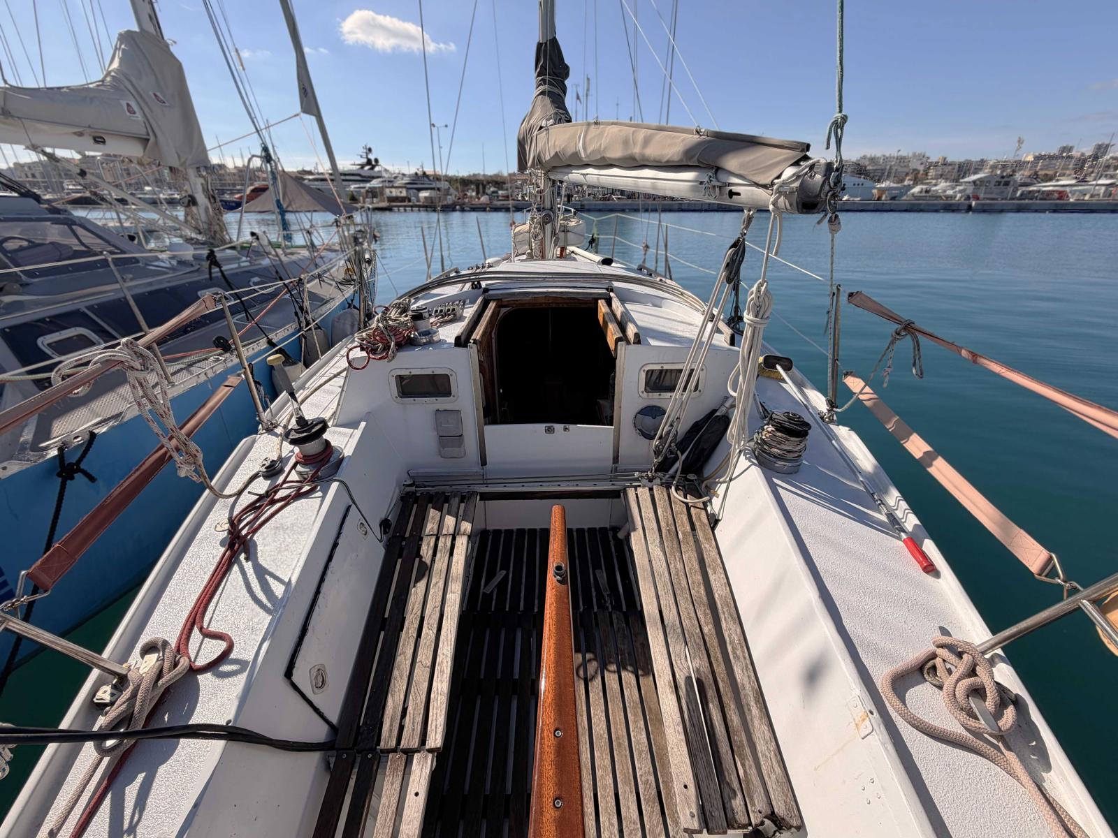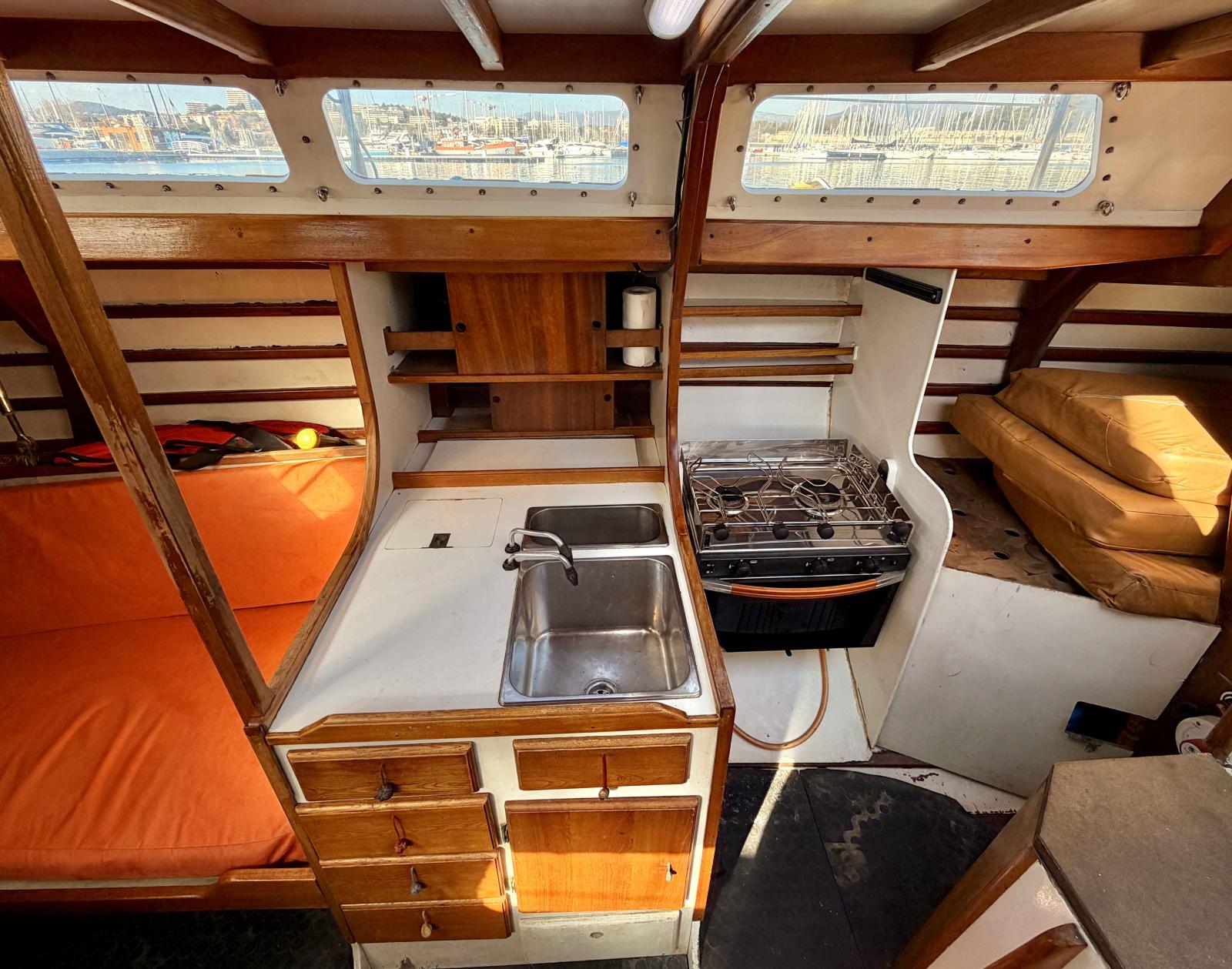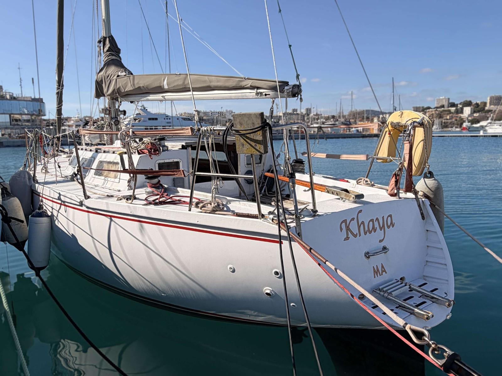 Issu d’une construction amateur artisanale réalisée avec soin à Marseille en 1985, Khaya est un voilier de type croisière-régate dont la coque en bois moulé époxy témoigne d’une construction solide et assure une bonne tenue à la mer. Doté d’une quille fine et profonde associée à un safran séparé, il offre une navigation précise et agréable à la barre. Ses lignes basses et élancées lui confèrent une silhouette élégante, empreinte du charme de son époque.