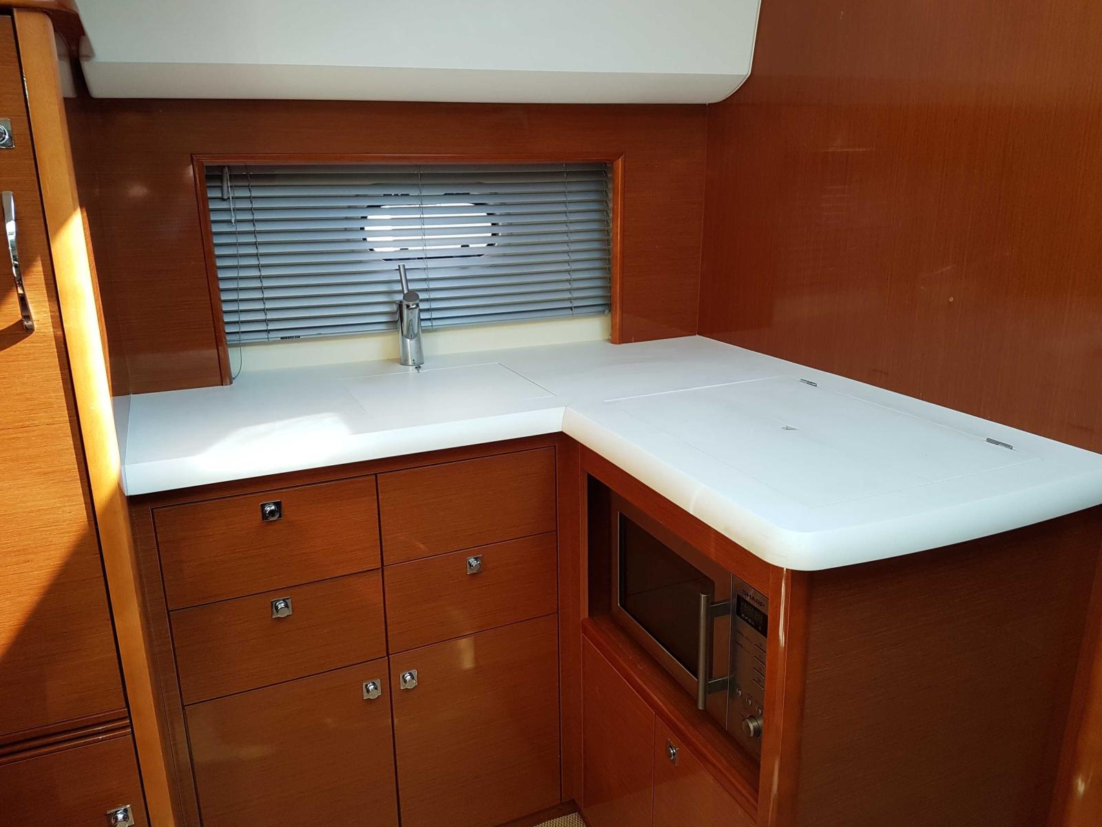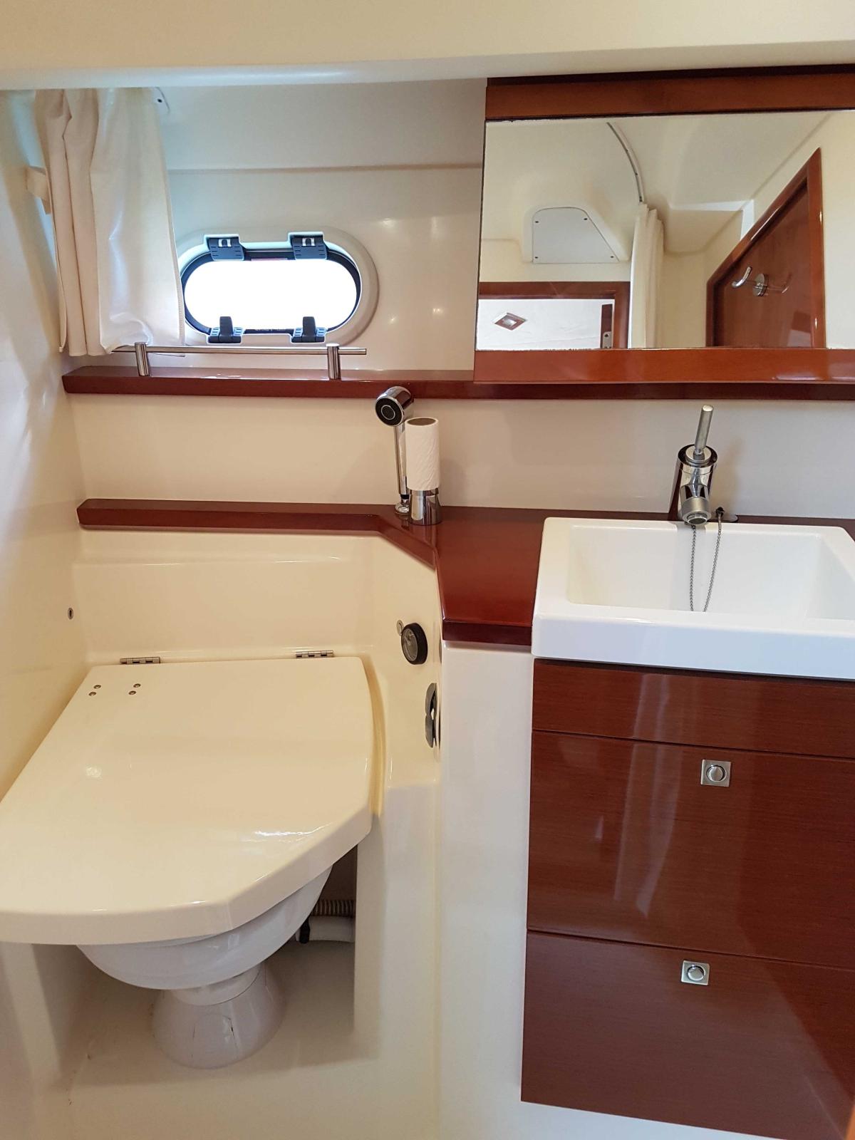 L'entretien est à jour et réalisé par des professionnels, les factures sont disponibles. Ce navire très bien équipé propose deux salons de cockpit, un garage à annexe et six couchages. La Prestige 38S possède un carré volumineux aux boiseries claires, face à une cuisine en L, et une cabine avant immense avec un dressing et un accès privatif à la salle d'eau.