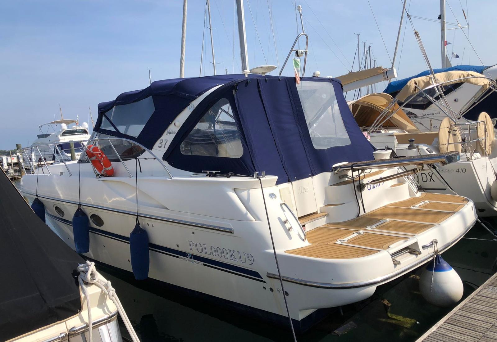 Alarme moteur, Eau sous pression, Batteries (nuove 2024), Chargeur de batterie (nuovo 2025), Douche de cockpit, 2 Flaps hydrauliques, Indicateurs de flaps, Éclairage de courtoisie, Passerelle (idraulica), Plateforme arrière, Pompe de cale automatique, Porte latérale, Cockpit en teck, Prise de quai, Onduleur, Rollbar, Guindeau électrique, Echelle de bain, table de cockpit (abbattibile), Table pliante de salon, Corne.