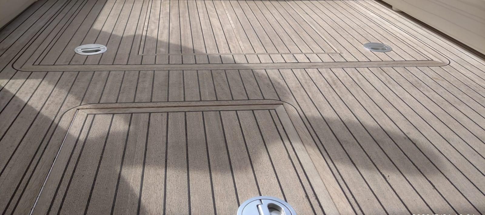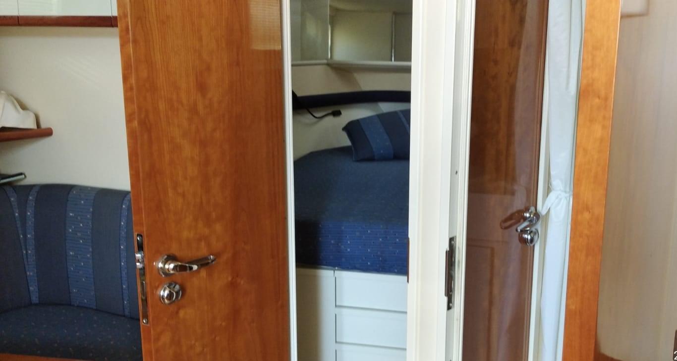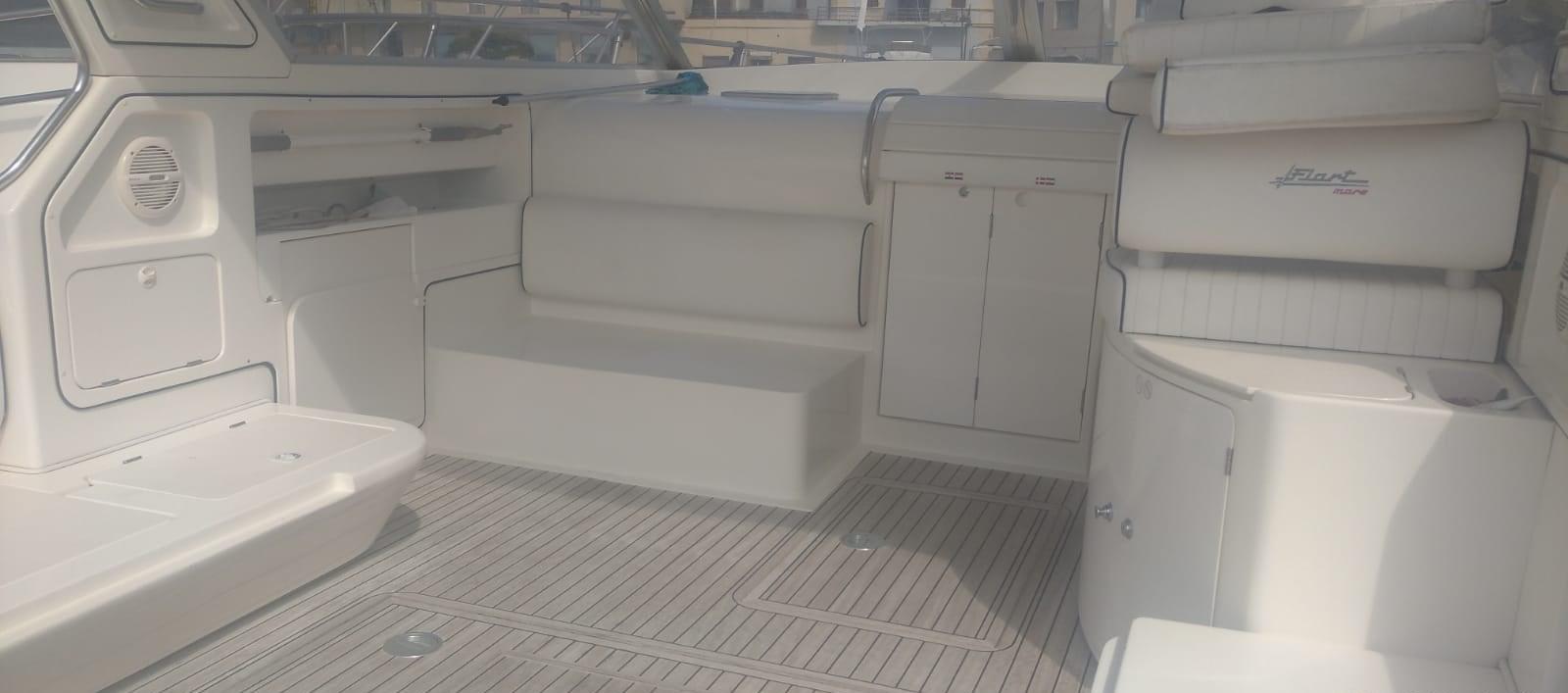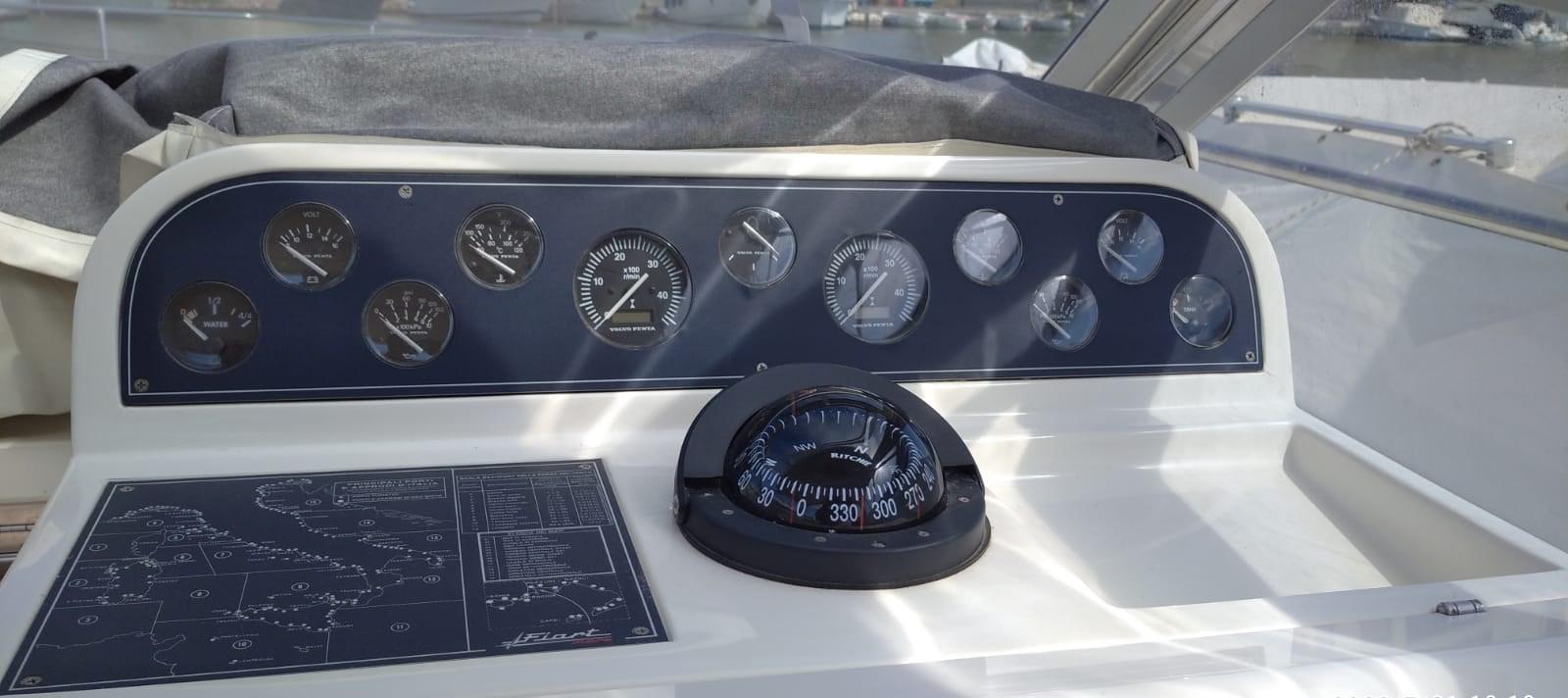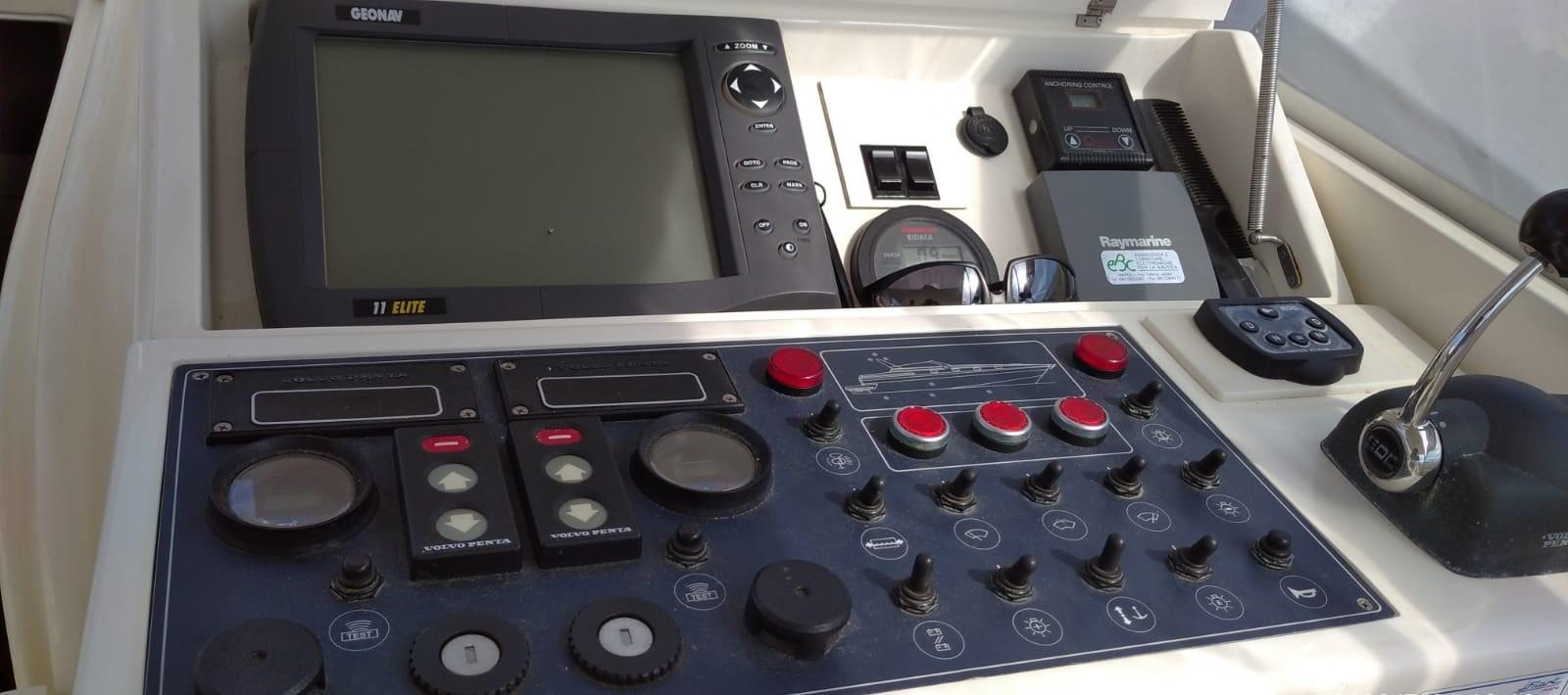 Alarme moteur, Ouverture du compartiment moteur électrique, Eau sous pression, 3 Batteries, Douche de cockpit, Flaps hydrauliques, Indicateurs de flaps, Lavabo dans le cockpit, Éclairage de courtoisie, Passerelle, Pompe de cale automatique, Porte latérale, Cockpit en teck (in perfette condizioni), Rollbar, Guindeau électrique, Echelle de bain, table de cockpit (elettrico), Corne.