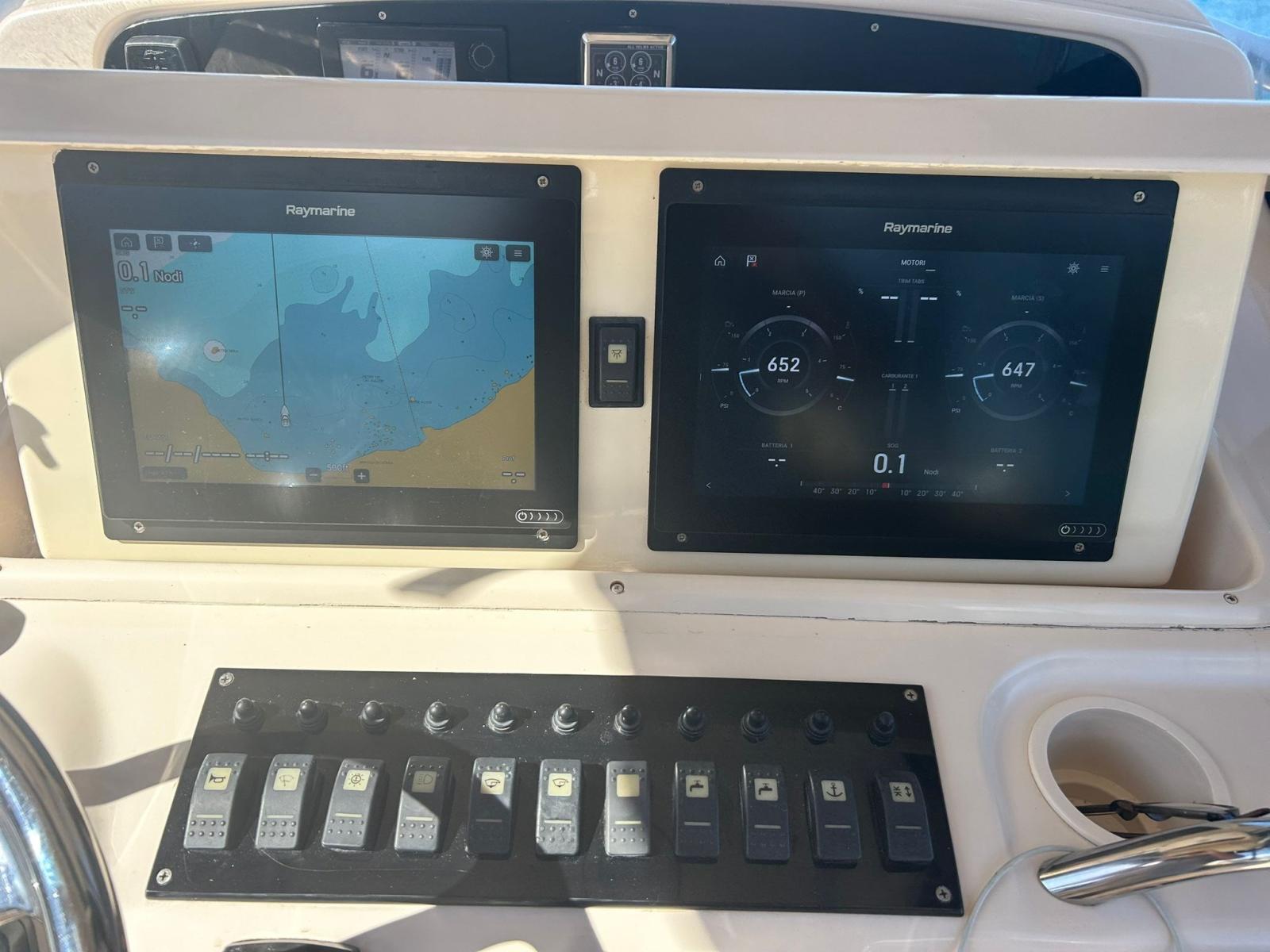 Alarme moteur, 4 Batteries (nuove 2024), Douche de cockpit, Panneau solaire, Plateforme arrière, Guindeau électrique, Echelle de bain, Corne, T-Top.