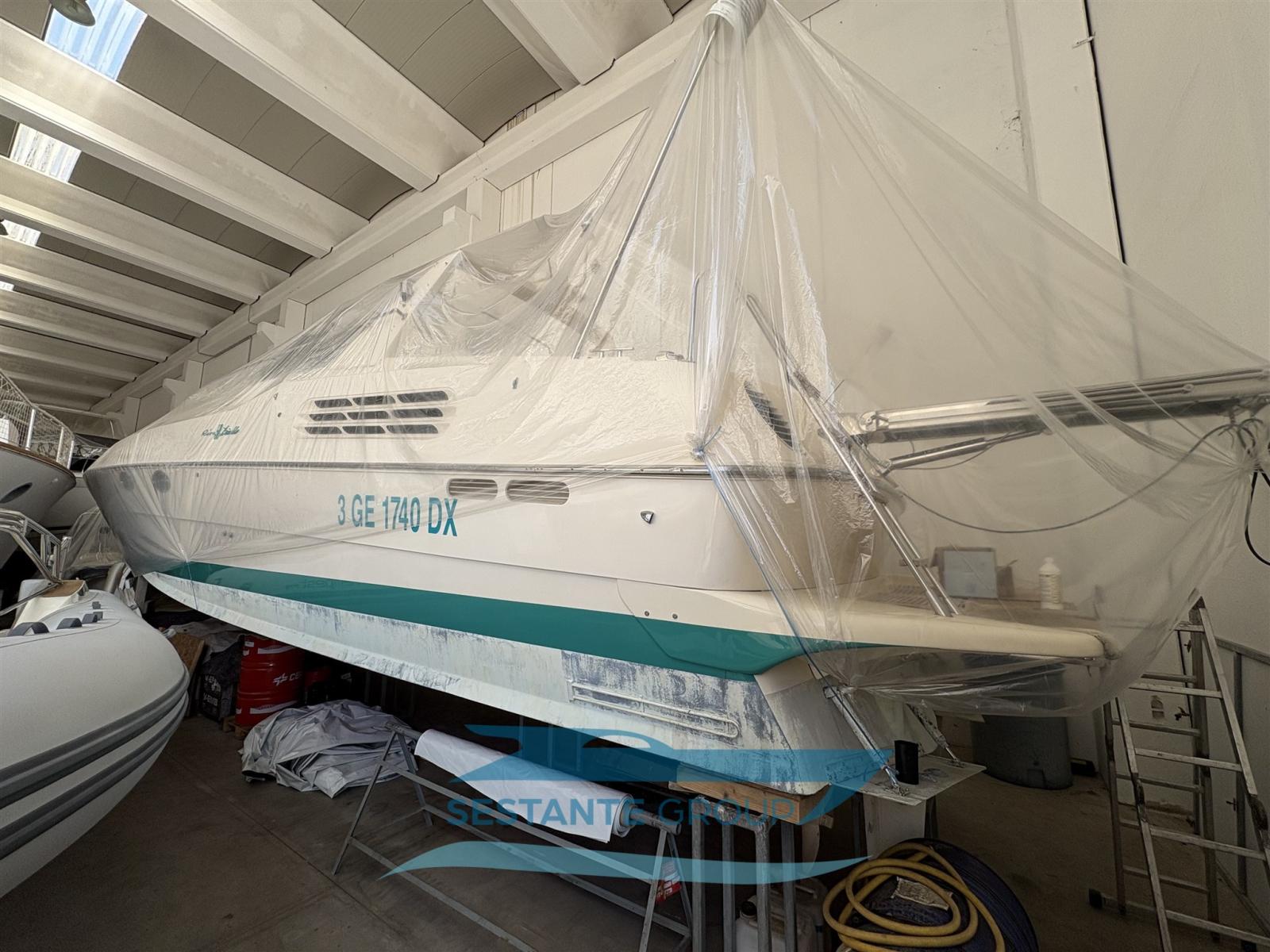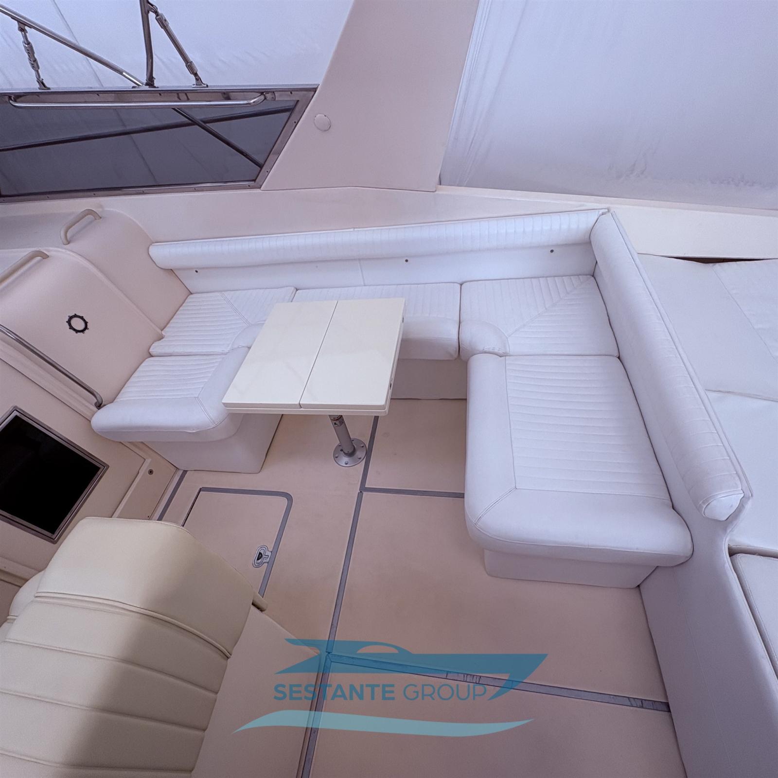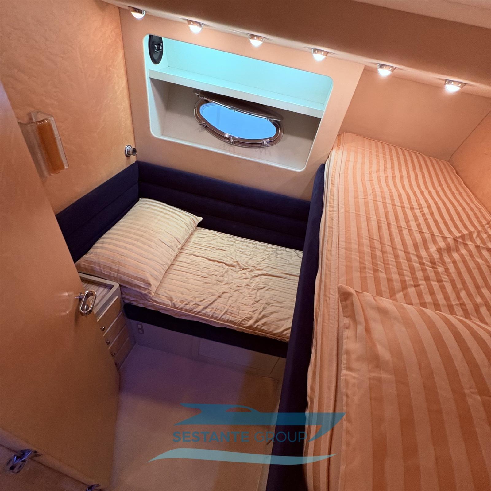 Alarme moteur, Alarme de pompe de cale, Eau sous pression, 9 Batteries (4 batterie motori 24V + 4 batterie servizi 24V + 1 batteria VHF, passerella, gruppo 12V), 2 Chargeur de batterie (anno 2021), Câble d’alimentation à quai, Douche de cockpit, Propulseur d'étrave (diametro 250 mm., 11 CV), 2 Flaps électriques (Revisione 2023), Extincteur(s) fixe(s) (Revisione 2025), Lavage de chaine, Éclairage de courtoisie, 6 Défenses, Passerelle, Plateforme arrière, 3 Pompe de cale automatique, 3 Pompe de cale électrique, Pompe de cale manuelle, Pompe à Eau de Mer (Antincendio revisone 2023), Porte latérale, Prise de quai, Onduleur, Guindeau électrique, Echelle de bain, table de cockpit, Corne, Winch électrique avant.