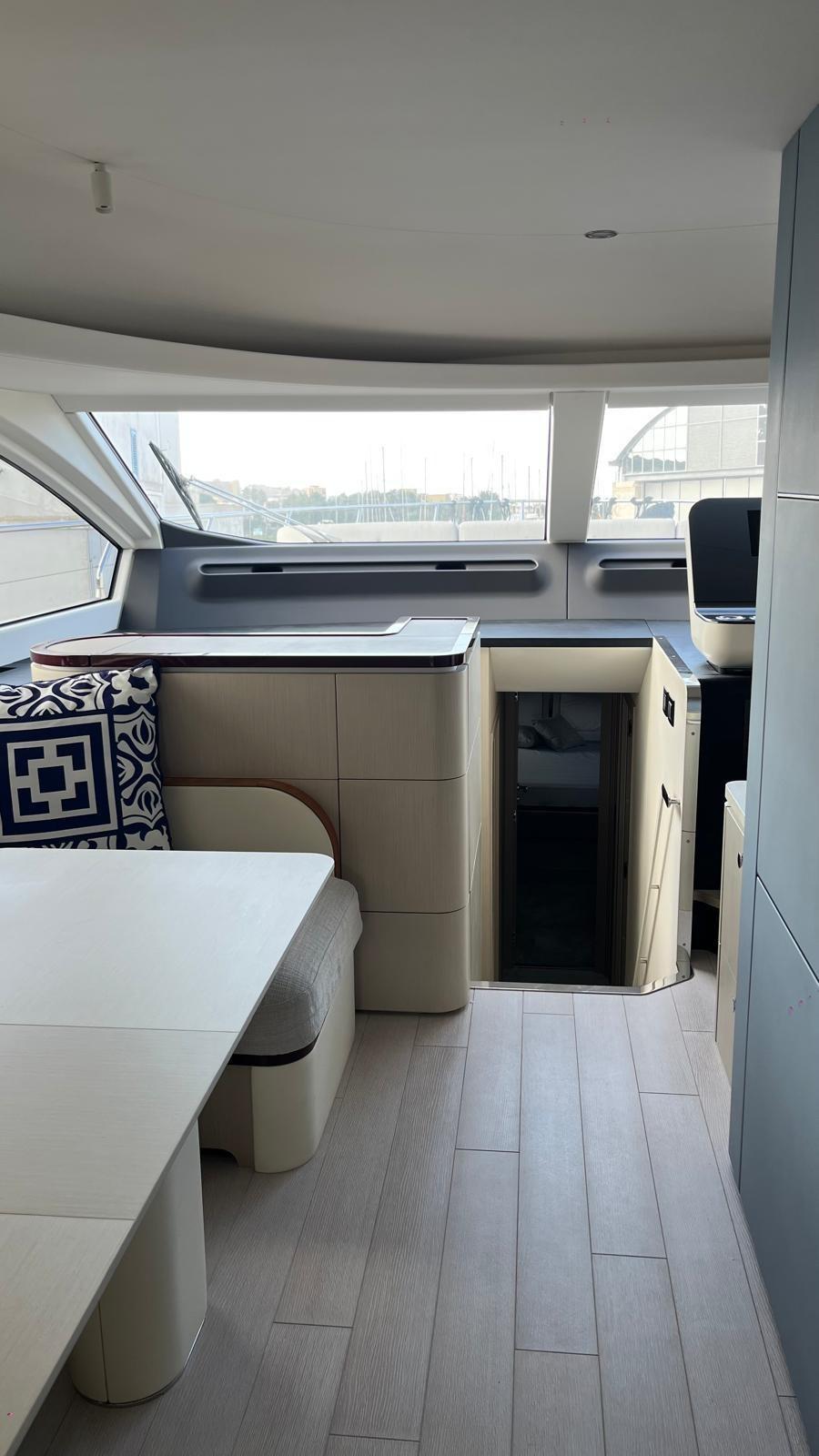 Alarme moteur, Alarme de pompe de cale, Alternateur, Auto Dynamic Trim Interceptor, Eau sous pression, Trim hydraulique, Passavant en teck, Câble d’alimentation à quai, Filères, Douche de cockpit, Double barre à roue, Phares fixes arrière, Phare de poursuite, Flaps électriques, Extincteur(s) fixe(s), Lavage de chaine, Lavabo dans le cockpit, Éclairage de courtoisie, Spots sous-marins, Défenses, Passerelle, Plateforme arrière, Pompe de cale automatique, Pont en teck, Porte latérale, Porte latérale, Cockpit en teck, Prise de quai, Connexion eau sous pression à quai, Guindeau électrique, Echelle de bain, Selles pour Annexe, table de cockpit, Filières avec sortie latèrale, Corne, T-Top, Pont en teck, Winch, Winch électrique arrière.