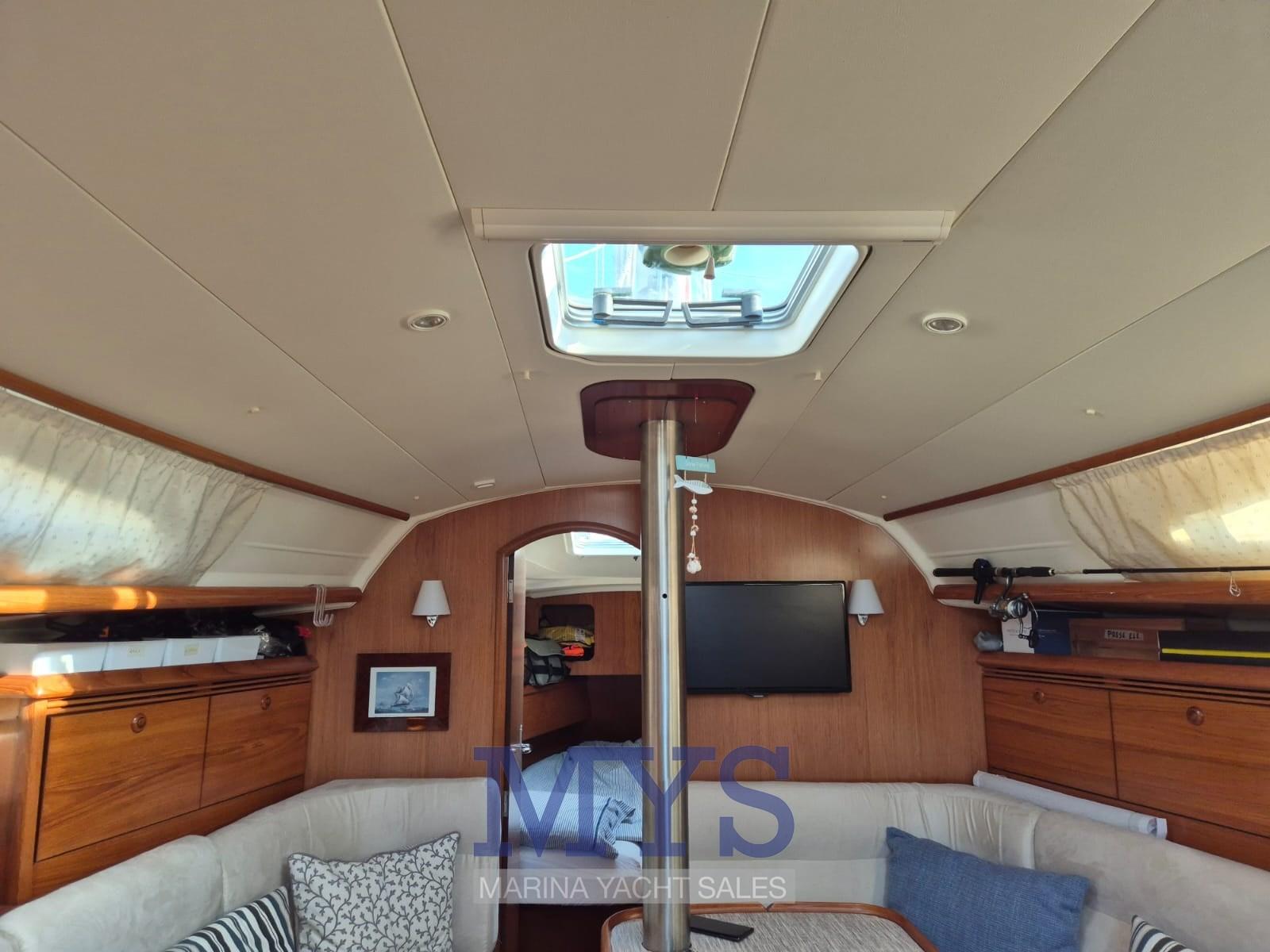 Alarme moteur, Alarme de pompe de cale, Eau sous pression, 3 Batteries, Douche de cockpit, Moniteur de batterie, Plateforme arrière, Pompe de cale automatique, Pompe de cale manuelle, Pompe à Eau de Mer, Cockpit en teck, Prise de quai, Guindeau électrique (Lofrans), Gréement monotoron (verificato), Echelle de bain, Chaise support HB, table de cockpit, Corne, 4 Winch (in pozzetto).