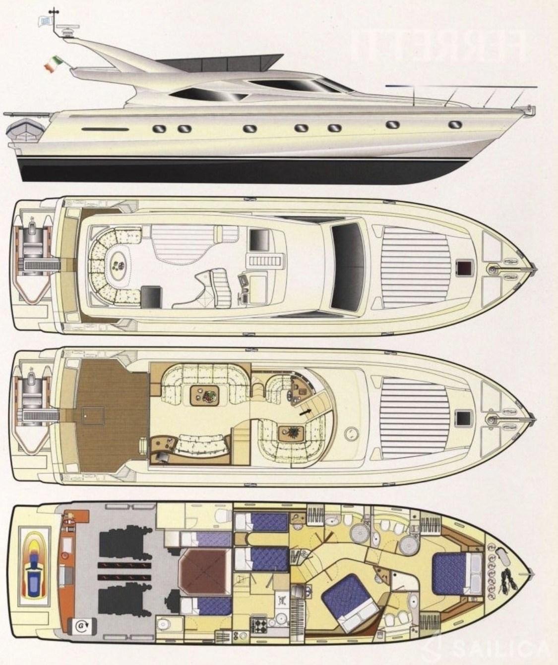 Eau sous pression, Douche de cockpit, Flaps hydrauliques, Extincteur(s) fixe(s), Spots sous-marins, Passerelle (Idraulica), Pompe de cale automatique, Cockpit en teck, Prise de quai, Guindeau électrique, Echelle de bain.