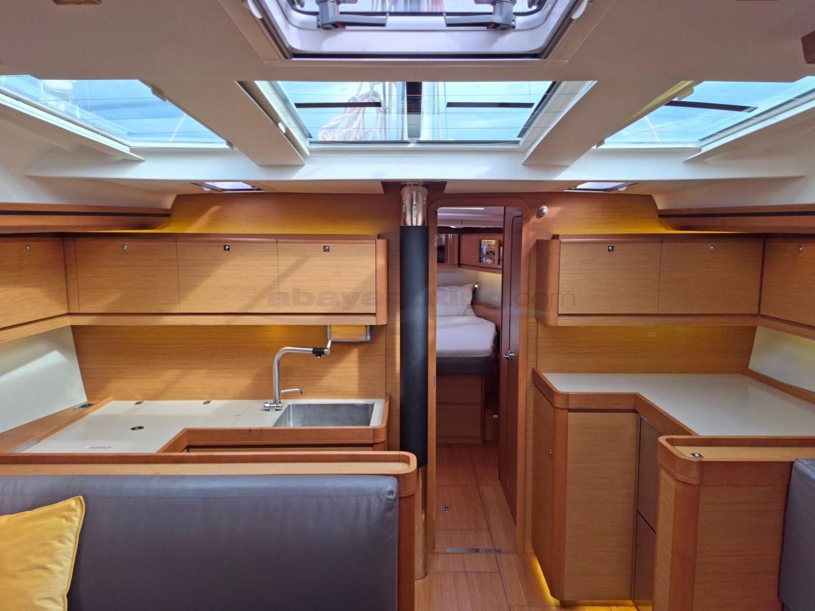 Dufour 520 d'occasion. Aménagement 3 cabines et 3 salles de bains (dont 2 électriques). Coque imprimée en 2017