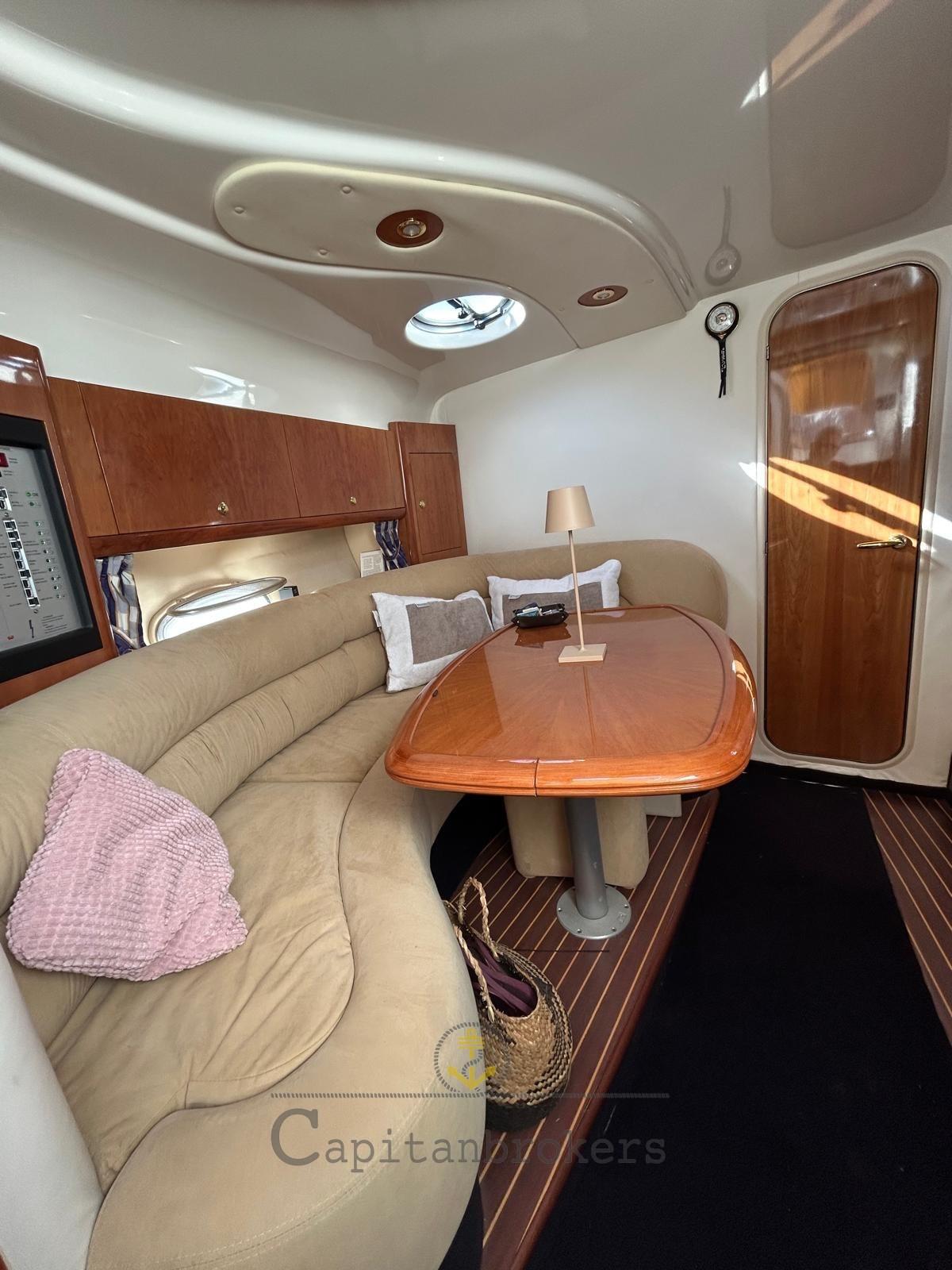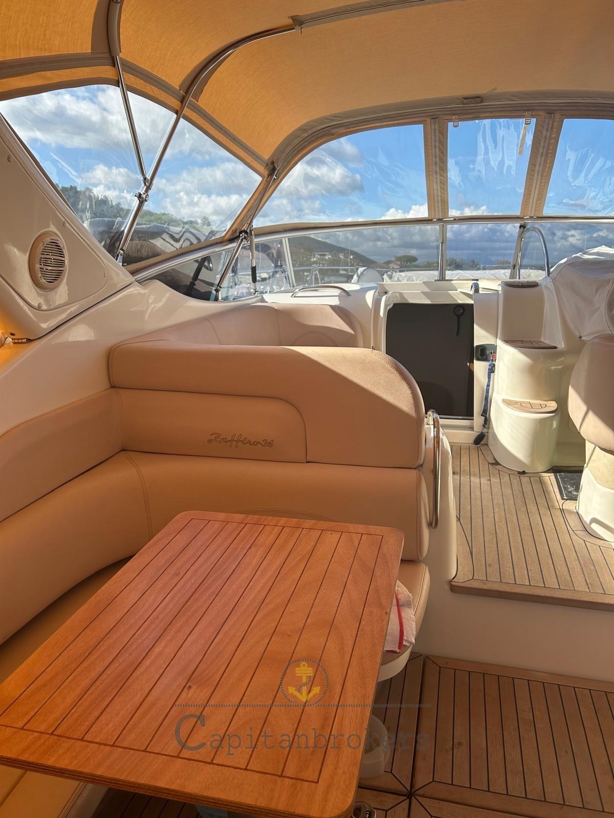 Alarme moteur, Alarme de pompe de cale, Eau sous pression, Douche de cockpit, Lavabo dans le cockpit, Passerelle, Plateforme arrière (IN TEAK), Pompe de cale automatique, Pompe de cale manuelle, Porte latérale, Cockpit en teck, Prise de quai, Connexion eau sous pression à quai, Guindeau électrique, Echelle de bain, table de cockpit, Corne.