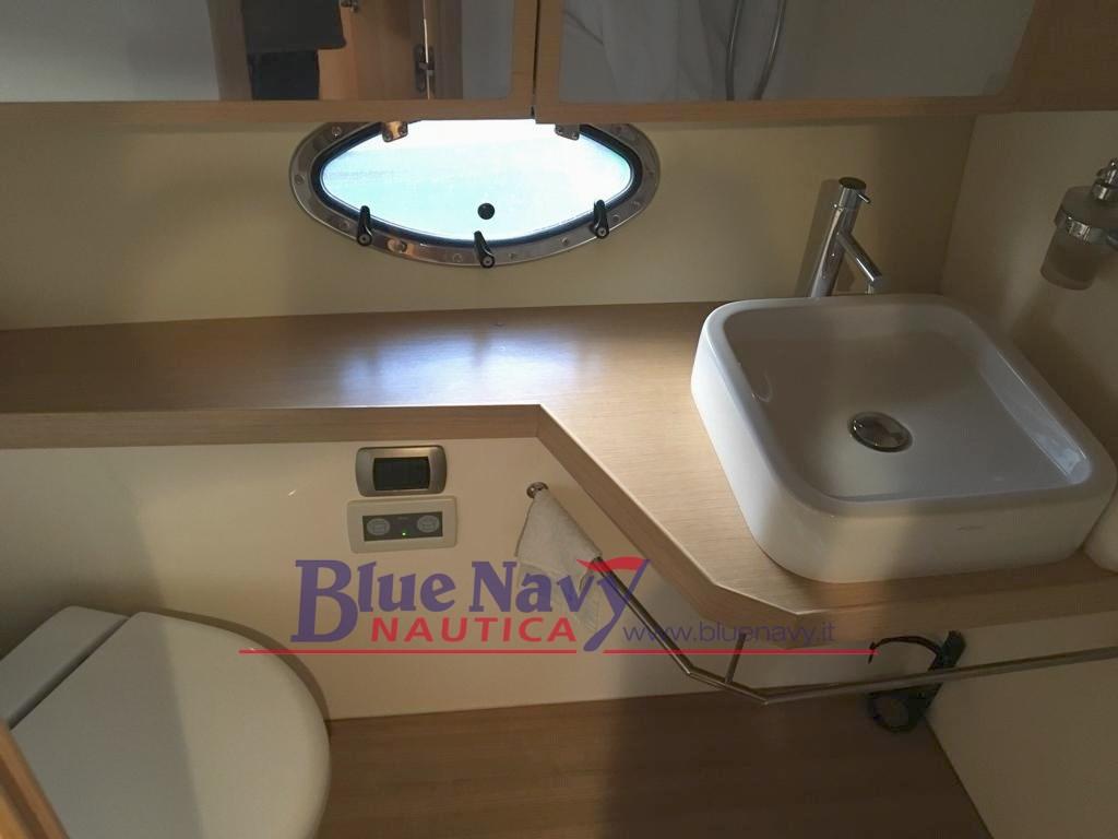 Disposition intérieure/extérieure : 1 cabine avant avec lit double, 1 cabine arrière avec lit double et lit simple, 2 toilettes complètes avec douche, toilettes électriques avec évacuation d’eau potable (accès réservé depuis chaque cabine), grande salle à manger avec table et canapé convertible en lit queen-size (lits totals 5+2) ; cuisine équipée de deux plaques à induction, d’un réfrigérateur et d’un four à micro-ondes, d’un ensemble complet de vaisselle, assiettes, verres, couverts et tasses. Ensemble complet de linge sur mesure pour les lits des deux cabines. Dans le cockpit extérieur - table à manger maxi, meuble à évier extérieur, réfrigérateur, plaques à induction. Pont de soleil à l’arrière en plus du grand pont de proue, auvent arrière, housse de coussin à l’avant, couvre-instruments de poste de barre,