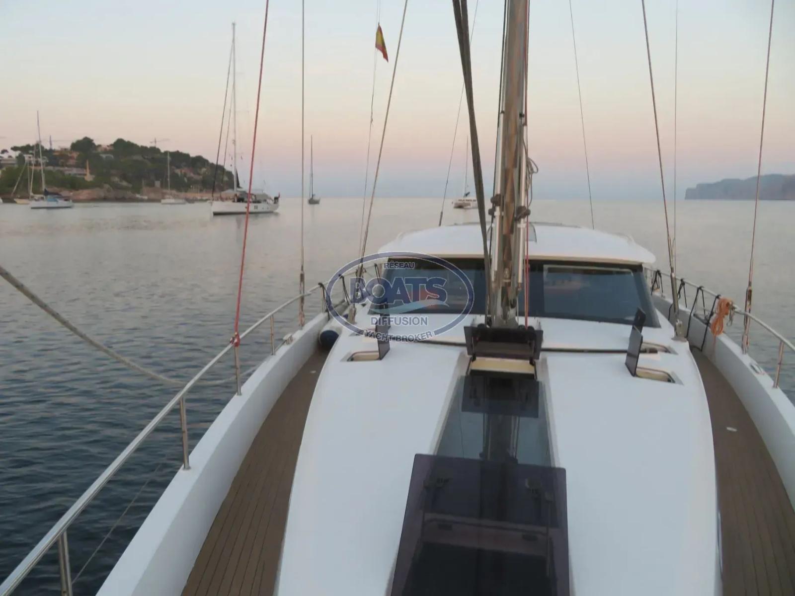 Ce Moody 54 Deck Saloon de 2018 dessiné par Dixon Yacht Design, est un voilier de grande croisière reconnu pour son confort exceptionnel, sa sécurité en mer et sa facilité de manœuvre.