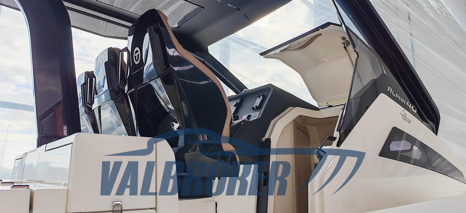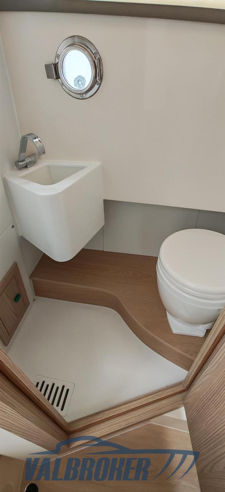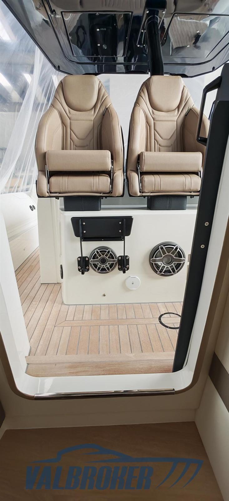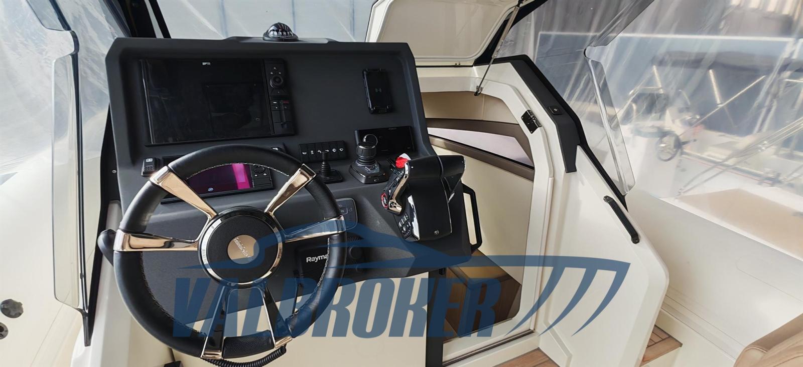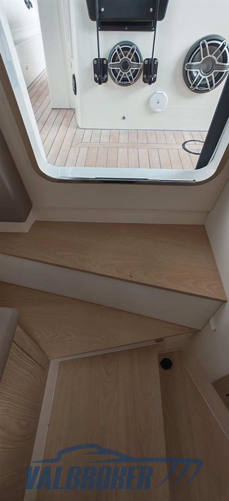 Ancre (inox ULTRA 8 kg 40m catena), Eau sous pression, 4 Batteries, Taquets pliants, Chargeur de batterie (Victron), Douche de cockpit, Spots sous-marins, Guindeau électrique, Echelle de bain, T-Top (con protezioni laterali).