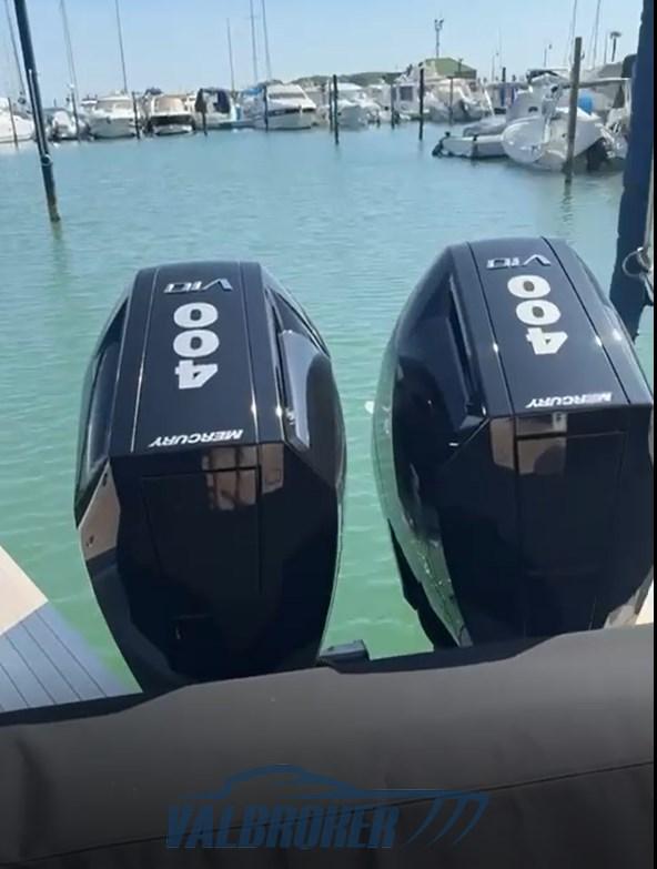 Compartiment ouvrant à l’avant avec cabine équipage (matelas et prises USB). Couleur BLANC. 2x400HP Mercury V10.