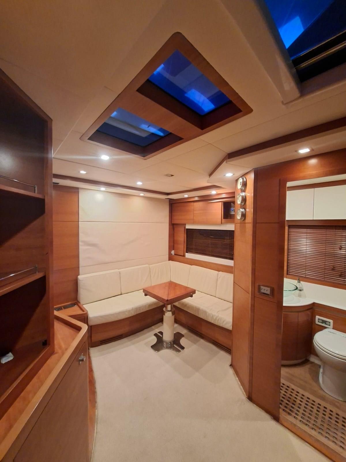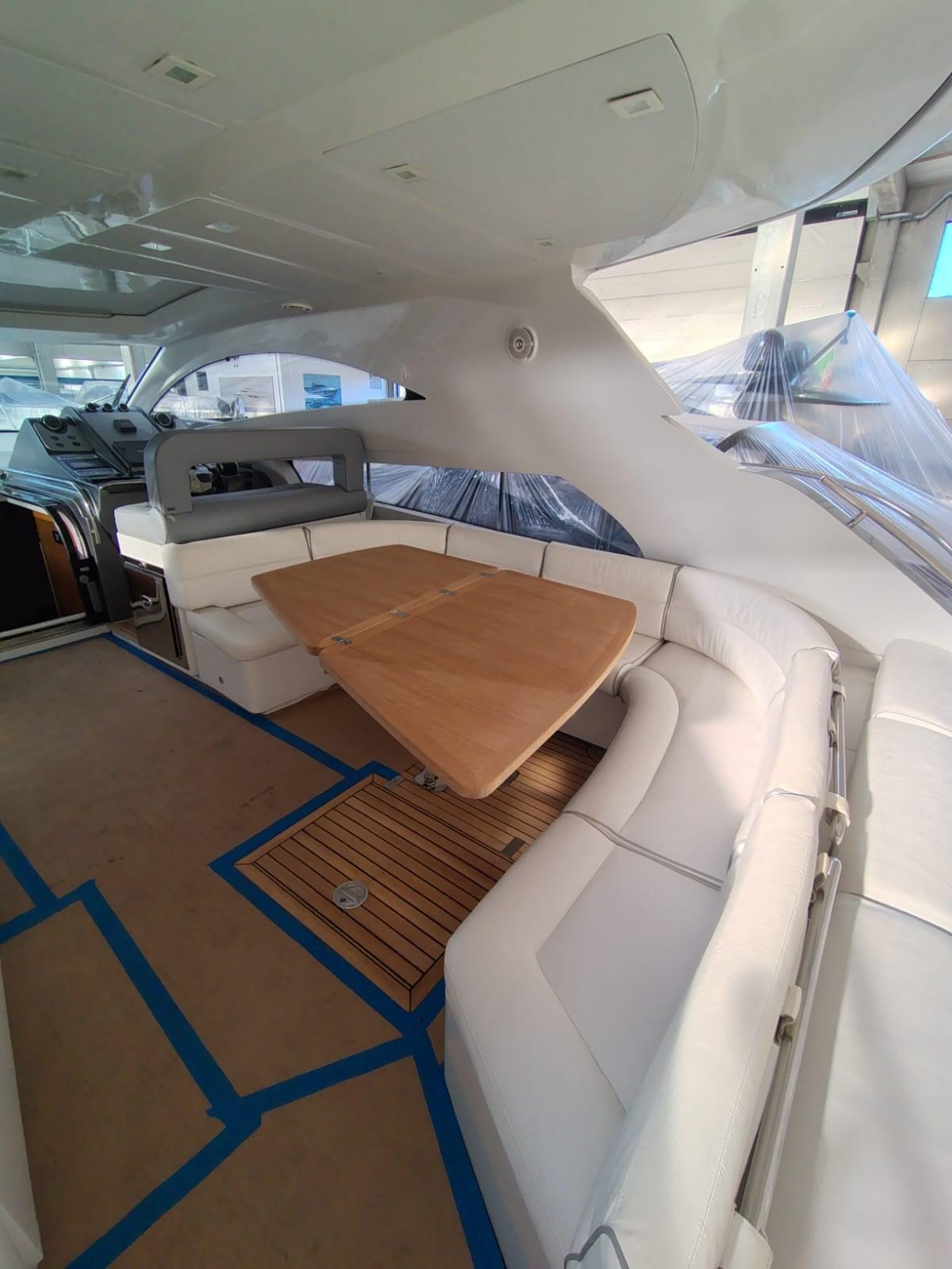 Alarme moteur, Alarme de pompe de cale, Alternateur, Ouverture du compartiment moteur électrique, Eau sous pression, Filères, Douche de cockpit, Phare de poursuite, Flaps hydrauliques, Hard top, Extincteur(s) fixe(s), Indicateurs de flaps, Lavage de chaine, Lavabo dans le cockpit, Éclairage de courtoisie, Spots sous-marins, Défenses, Passerelle, Plateforme arrière, Pompe de cale automatique, Pompe de Lavage du Pont, Cockpit en teck, Prise de quai, Connexion eau sous pression à quai, Rollbar, Guindeau électrique, Echelle de bain, Système de filtration des eaux usées, table de cockpit, Table pliante de salon, Corne, Winch électrique arrière, Winch électrique avant.