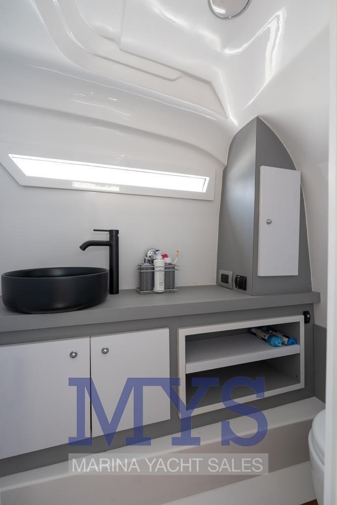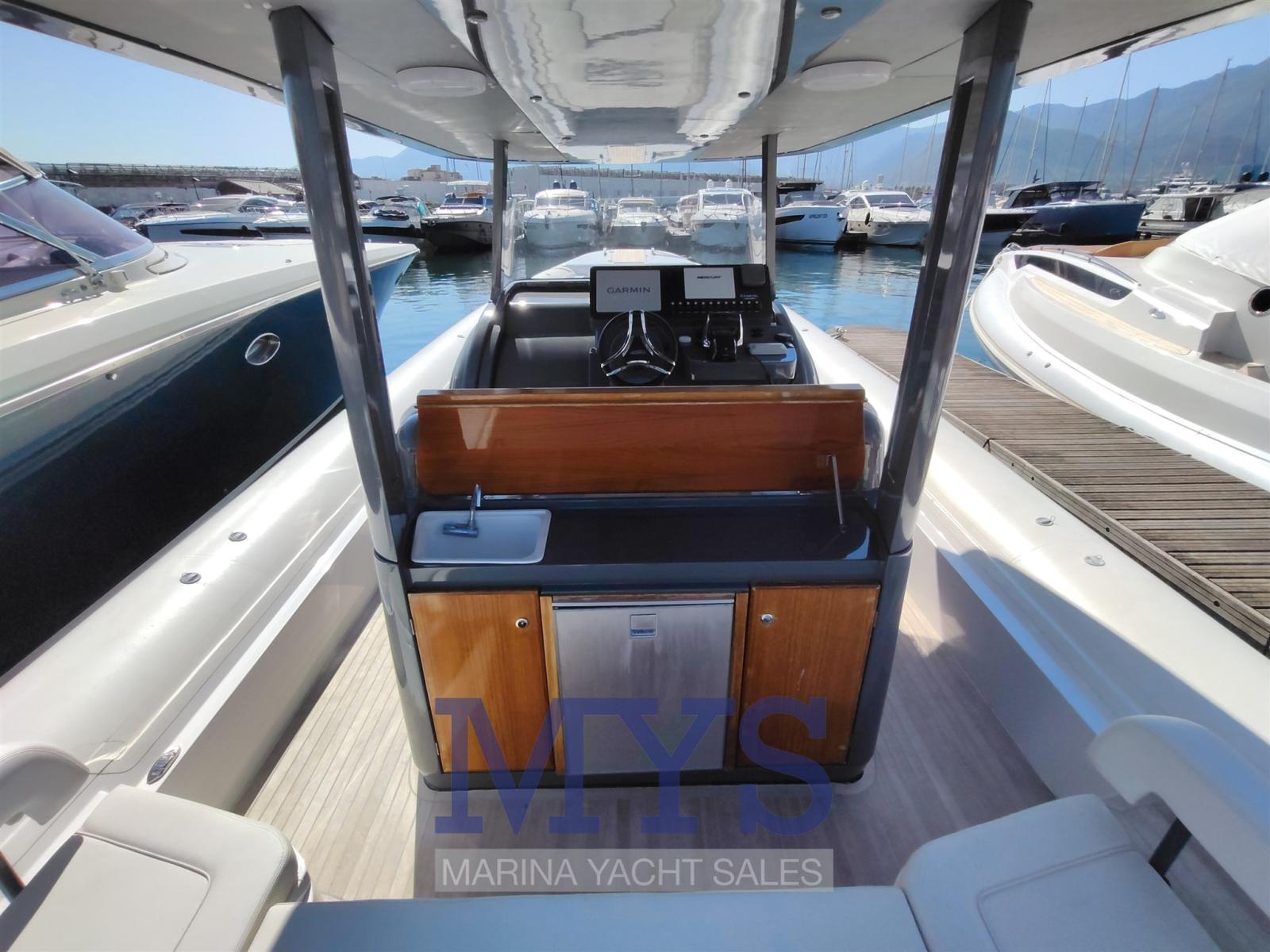 Alarme de pompe de cale, Douche de cockpit (anche a prua), Lavabo dans le cockpit, Éclairage de courtoisie, Plateforme arrière, Pompe de Vidange du Réservoir d’Eaux Usées, Pompe de cale automatique, Cockpit en teck, Prise de quai, Guindeau électrique, table de cockpit, Corne, T-Top.