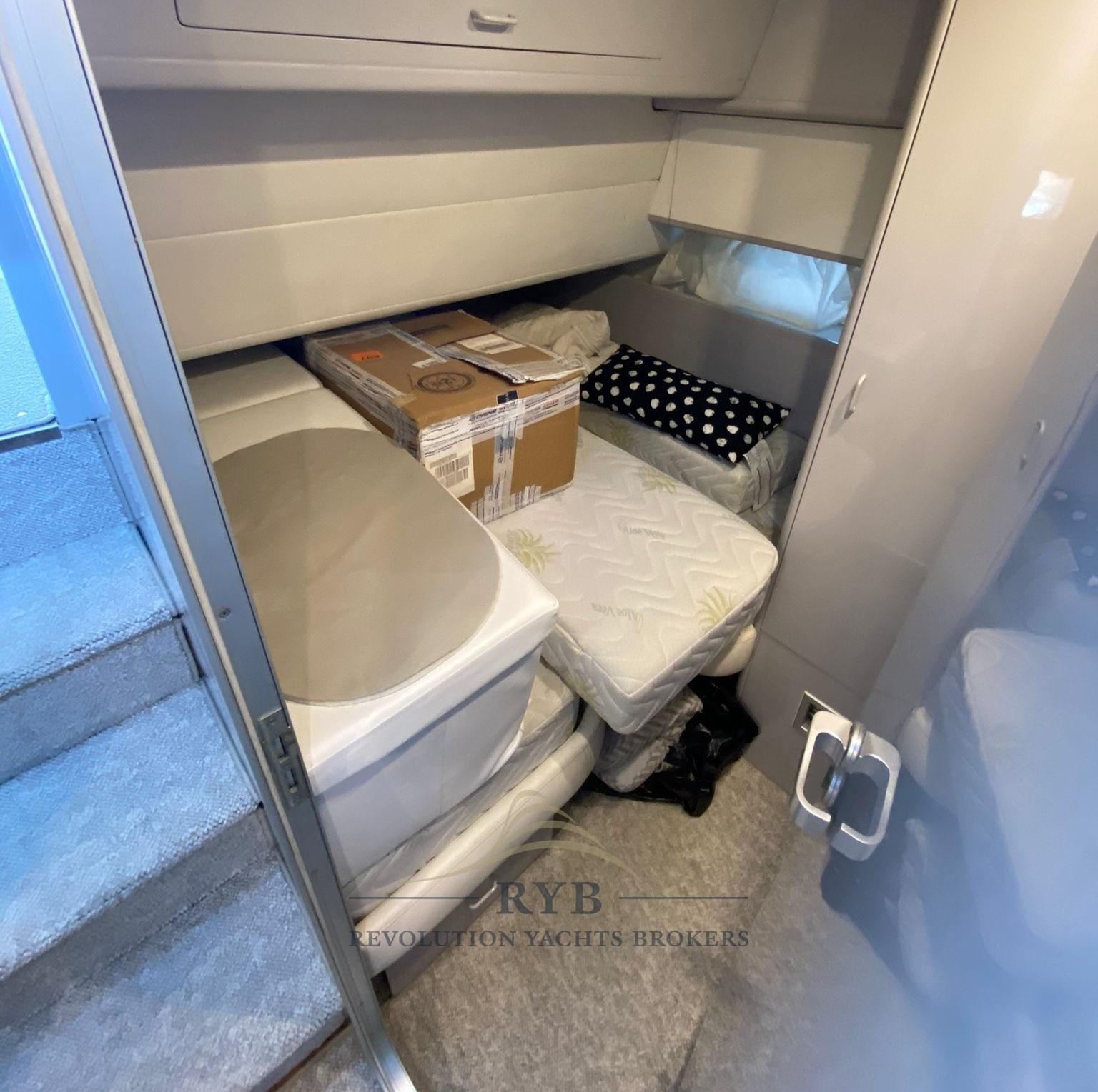 Nouveau propulseur d’arc. Panneaux solaires. Frigo volant. Nouveau frigo de cuisine. Couvre-coussins intérieurs et externes. Tapis. Nouveaux matelas. Wifi - antenne TV Glomex, onduleur 3 kW, nouvelle salle des machines pour le système d’extinction.