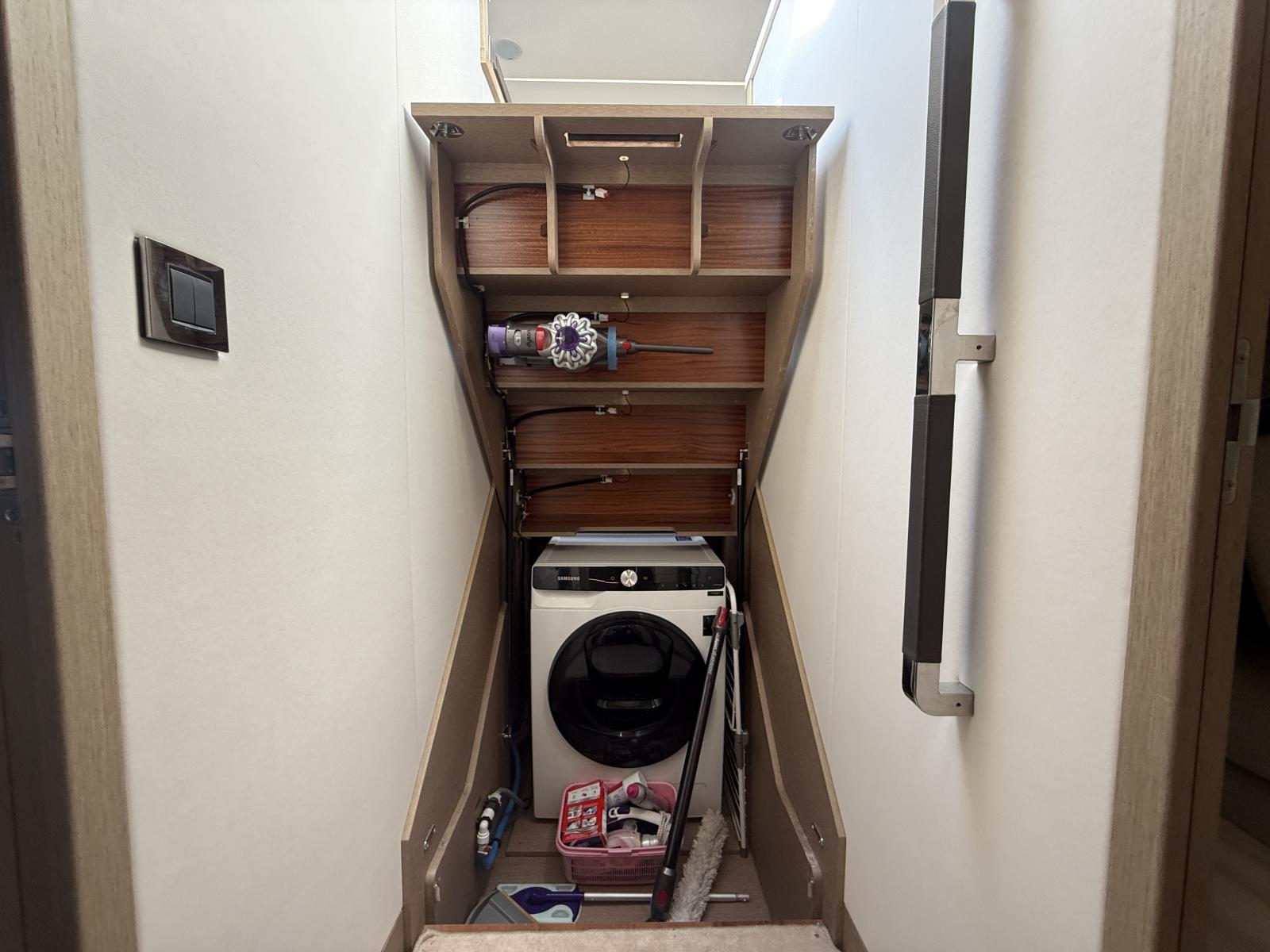 Intérieur Luxe : Micro-ondes Miele, lave/sèche-linge, lave-vaisselle, clim tropicale 137k BTU + marin 8k BTU, TV 43" salon/proprio/VIP (pré-câblage complet), matelas ressorts, moquette Élégance, parquet chêne blanchi, table salon pliable luxe, coffre-fort, meuble rangement, tiroirs cuisine laqués.