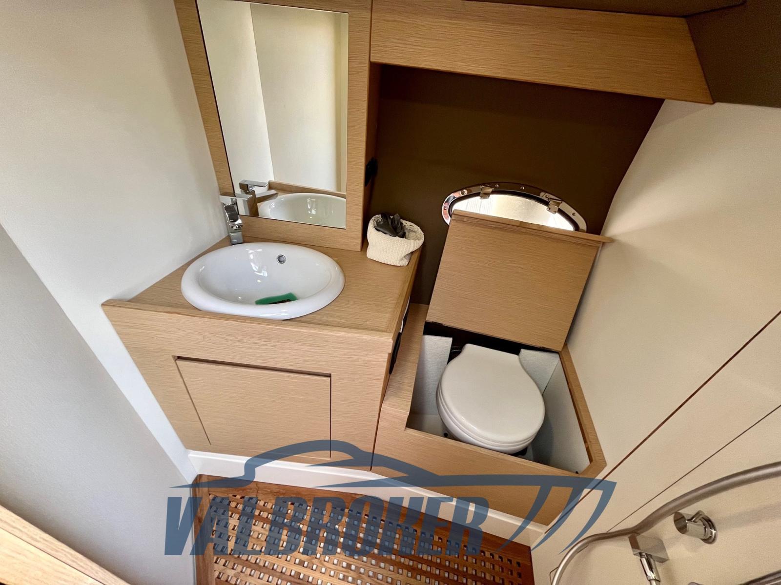 Ouverture du compartiment moteur électrique, Eau sous pression, Douche de cockpit, Garage à annexe, Indicateurs de flaps (Lenco), Lavabo dans le cockpit, Éclairage de courtoisie, Spots sous-marins, Plateforme arrière (teak), Cockpit en teck, Guindeau électrique, Echelle de bain (amovibile), table de cockpit (teak, amovibile).