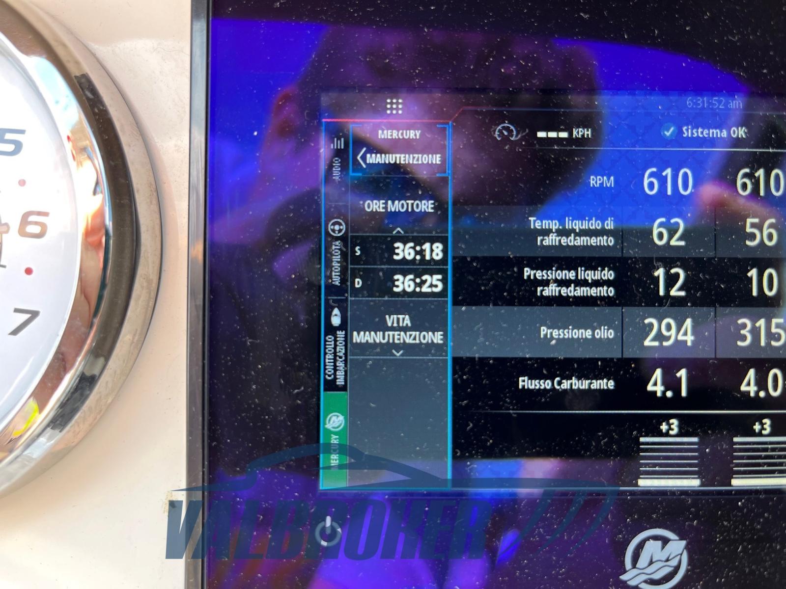 Ordinateur fixe de bord (Mercury), Sondeur pêche (con trasduttore), GPS (Raymarine “Axiom 9”), Joystick.