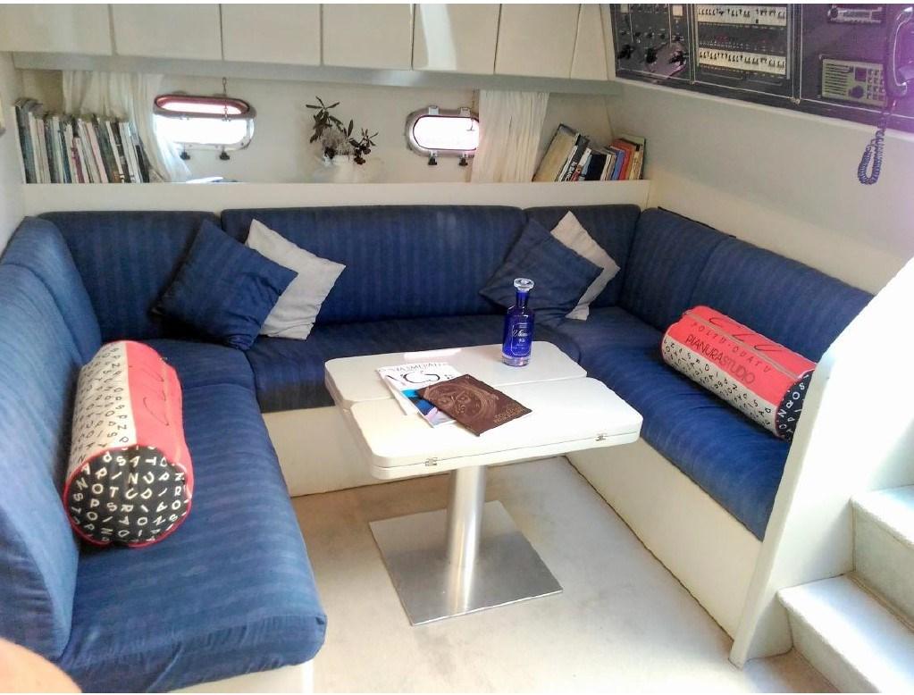 Alarme moteur, Eau sous pression, 4 Batteries (700ah), Douche de cockpit, 2 Flaps hydrauliques, Extincteur(s) fixe(s) (sala macchine), Indicateurs de flaps (non funziona), Lavabo dans le cockpit, Éclairage de courtoisie, Passerelle (idraulica Besenzoni con telecomando), Plateforme arrière, Pompe de cale automatique, Prise de quai, Connexion eau sous pression à quai, Onduleur (nuovo 2014), Rollbar, Guindeau électrique, Echelle de bain, table de cockpit, Table pliante de salon, Corne.