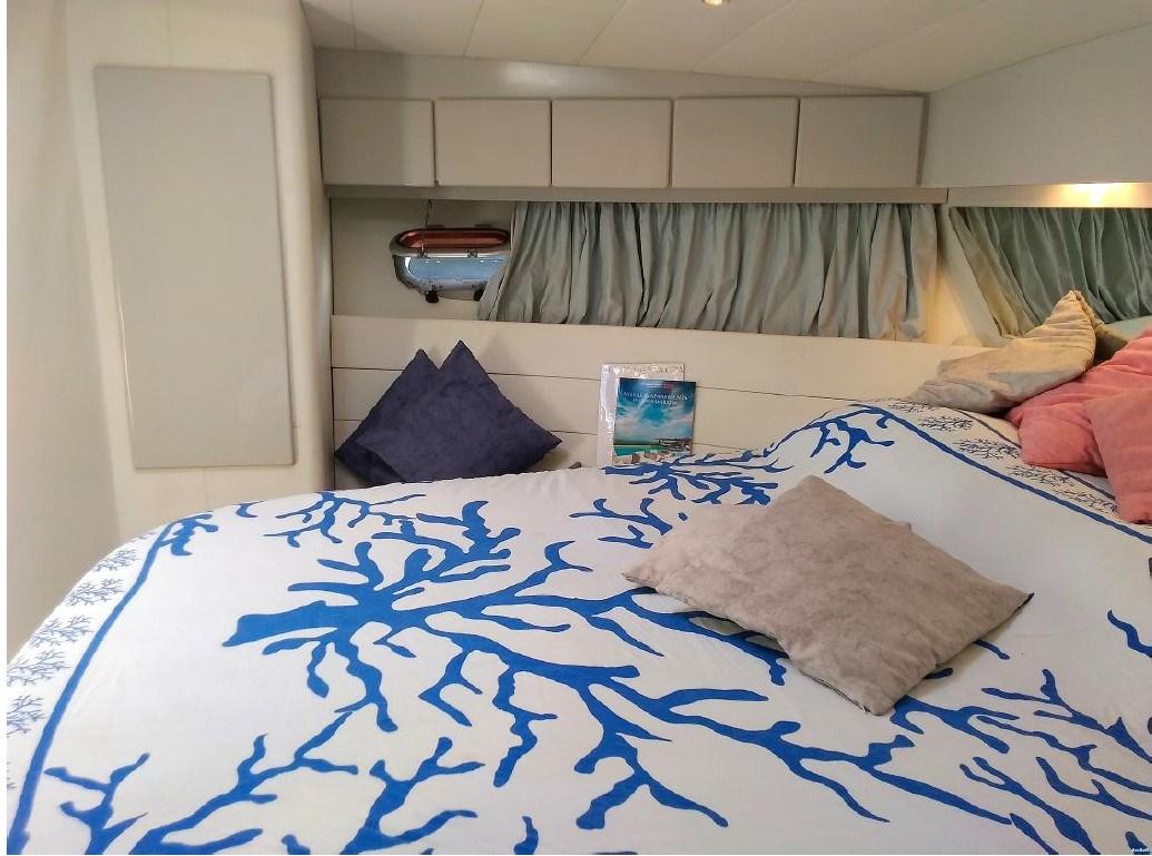 3 cabines : cabine principale avant - 1 cabine double pour invités au sol et une double cabine en forme de « L » - 3 salles de bain