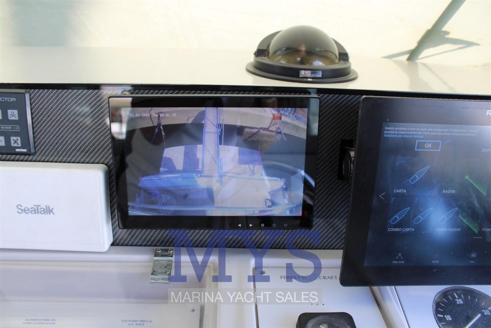 Alarme moteur, Eau sous pression, Douche de cockpit, Double barre à roue, Flaps hydrauliques, Extincteur(s) fixe(s), Indicateurs de flaps, Éclairage de courtoisie, Passerelle, Plateforme arrière, Pompe de cale automatique, Porte latérale, Cockpit en teck, Prise de quai, Connexion eau sous pression à quai, Répétiteur électronique, Rollbar, Guindeau électrique, Echelle de bain, Corne.