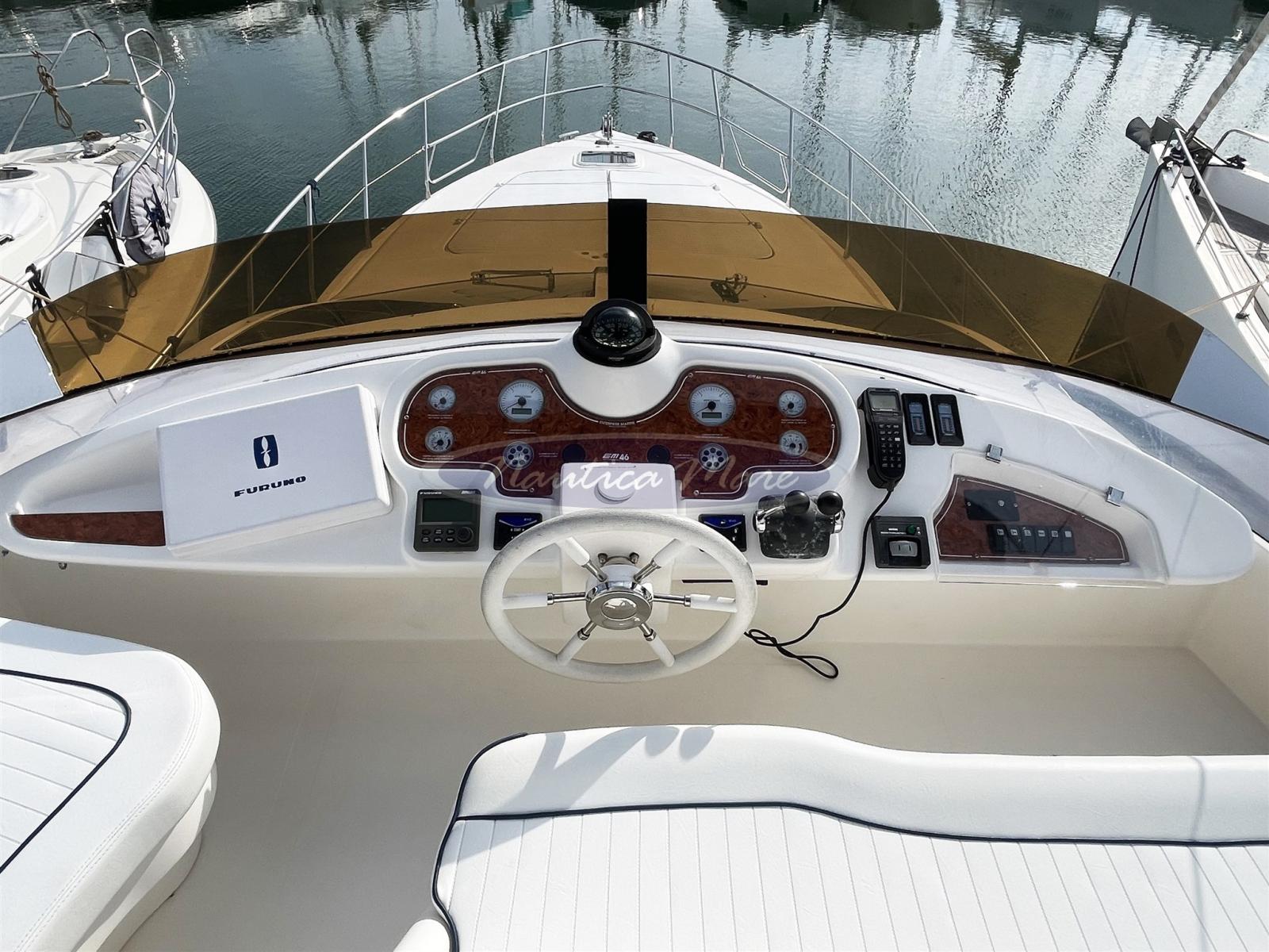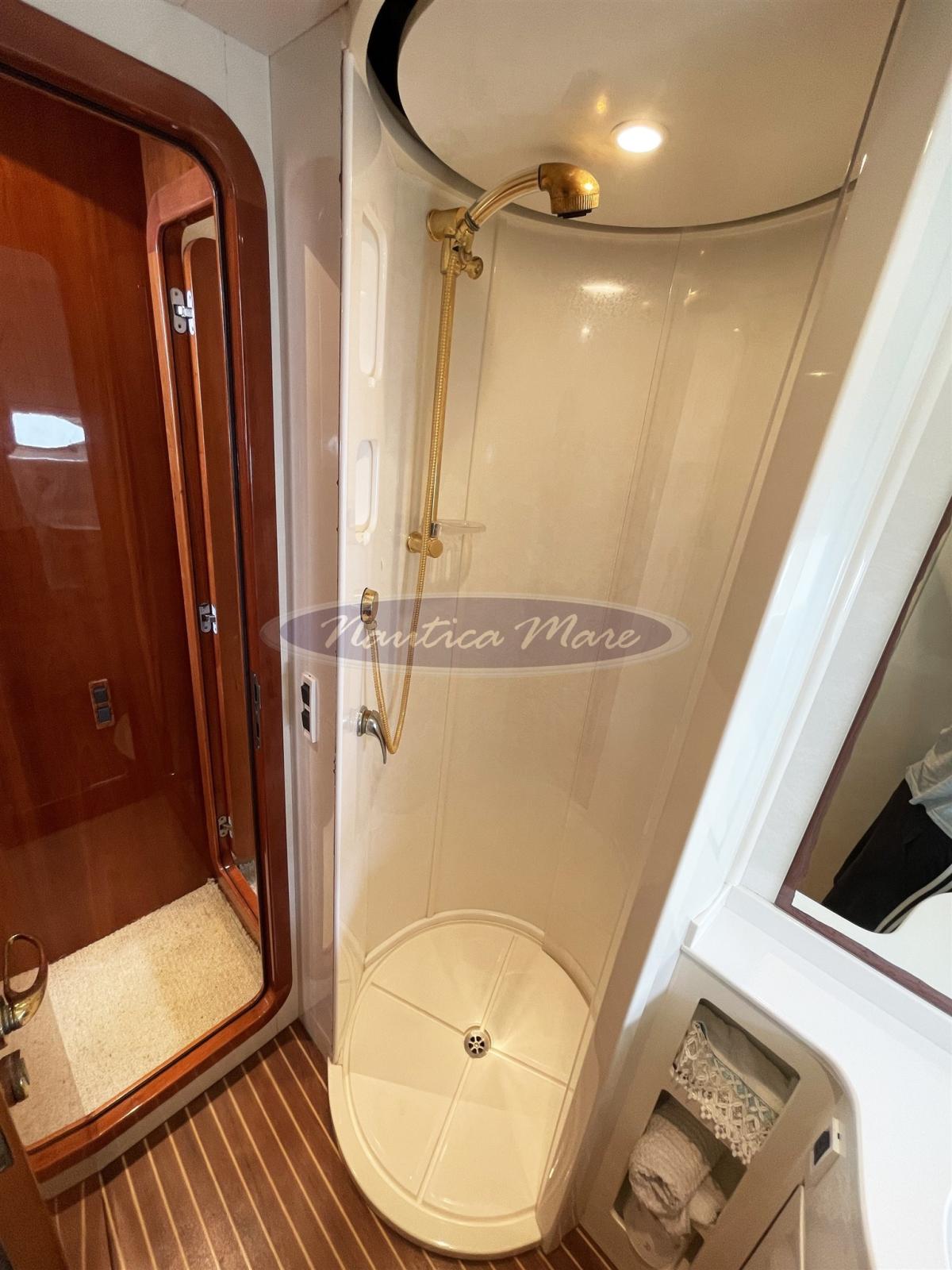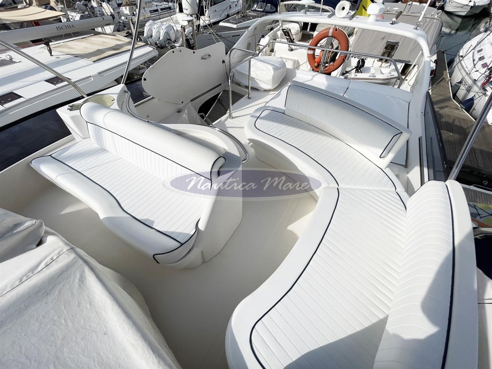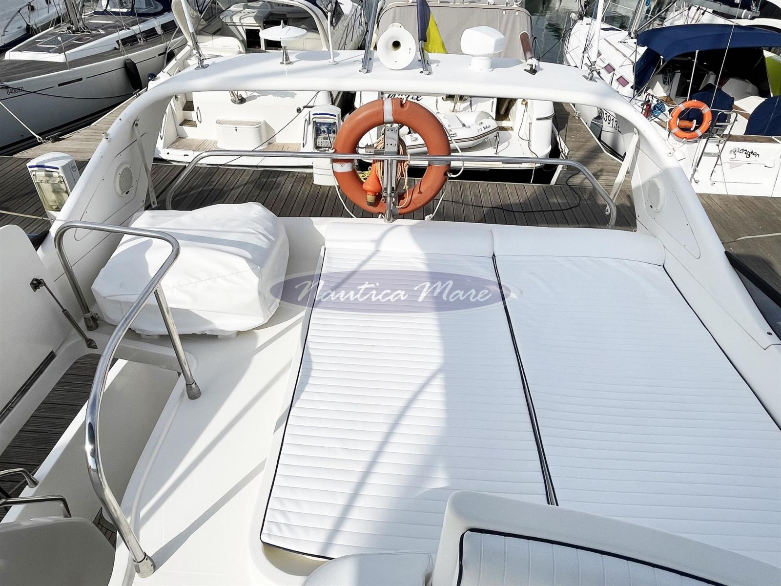 Alarme moteur, Eau sous pression, Douche de cockpit (con miscelatore c/f), Double barre à roue, Flaps hydrauliques, Extincteur(s) fixe(s), Indicateurs de flaps, Passerelle (Opacmare), Plateforme arrière (con rivestimento in teak), Pompe de cale automatique, Pompe de cale manuelle, Porte latérale (Inox e vetro), Cockpit en teck, Prise de quai, Connexion eau sous pression à quai, Répétiteur électronique (sul fly), Rollbar, Guindeau électrique, Echelle de bain, Annexe (Arimar 2,50 chiglia pneumatica e fondo in alluminio + motore Honda 5 hp), Corne, 2 Winch électrique arrière.