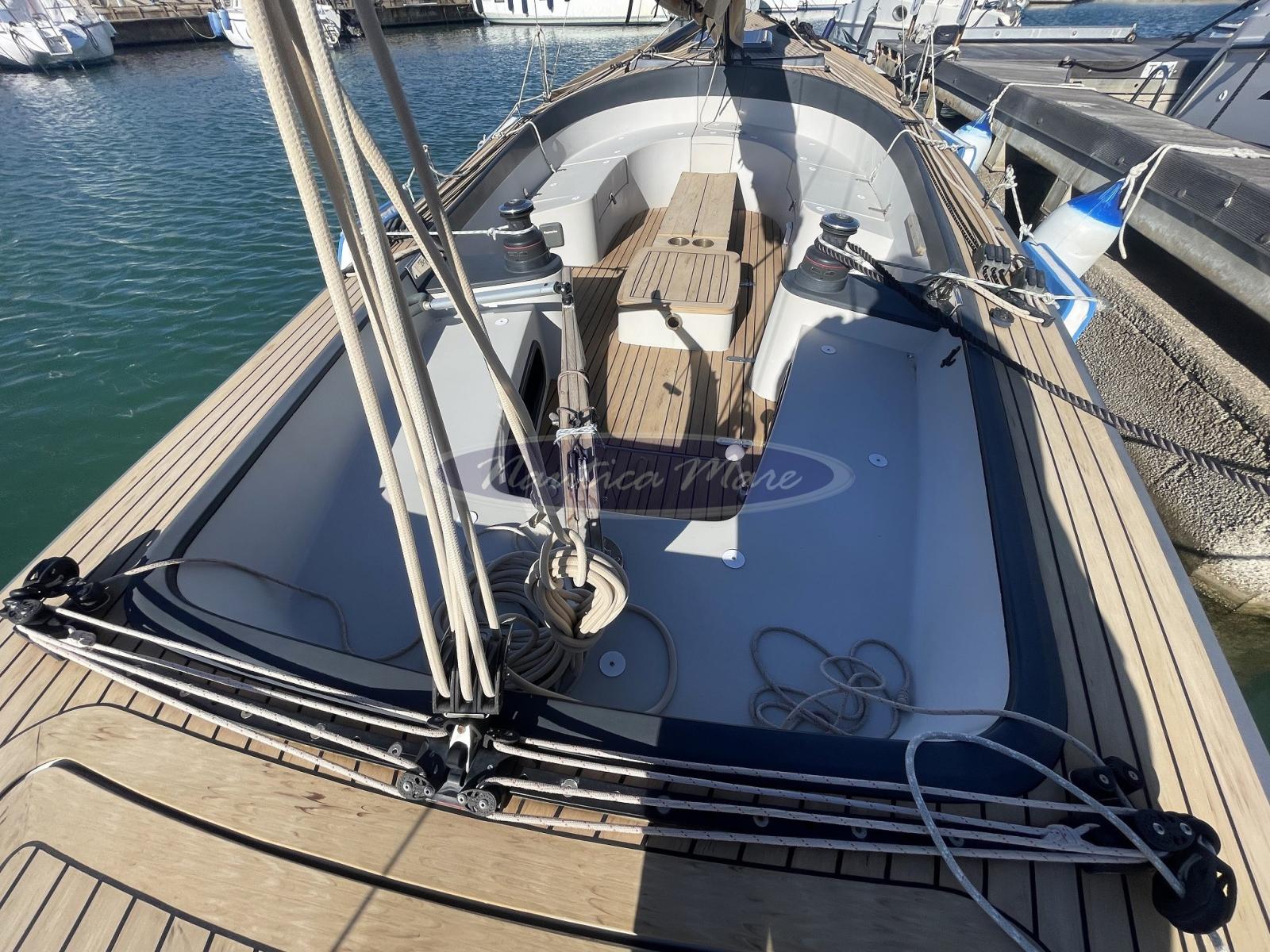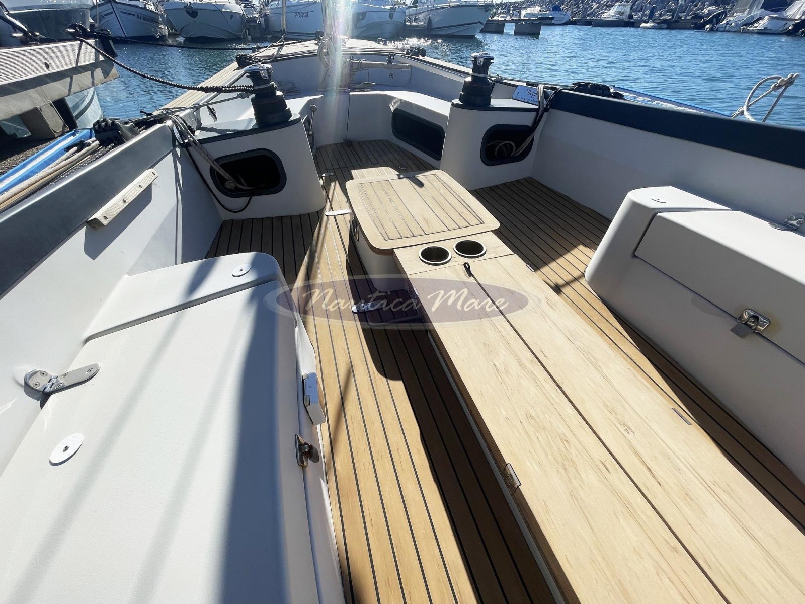 Eau sous pression, Taquets pliants, Douche de cockpit, Pont en teck (sintetico), Prise de quai, Echelle de bain, table de cockpit.