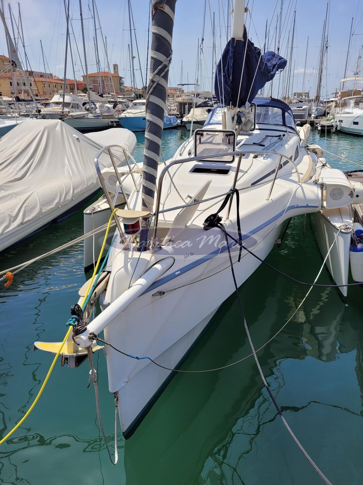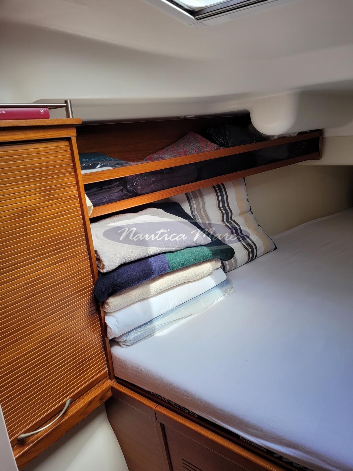 2 Ancre (Spade 7 kg. in alluminio con 13 kg. di catena da 8 mm. calibrata e 37 mt. di cima. Grappino Malingri inox smontabile 12 kg), Eau sous pression, 4 Batteries (70 Ah AGM), Chargeur de batterie (Mastervolt), Douche de cockpit, Propulseur d'étrave (4 kW a scomparsa), Moteur hors-bord pour annexe (2,5 hp), 3 Panneau solaire (Solbian 2 x 100 W + 1 x 56 W con regolatore), Prise de quai, Guindeau électrique (Quick 1000 W), Gréement monotoron (in Dyform originale (sostituito strallo di prua)), Echelle de bain, Annexe (con motore fuoribordo Honda 2,5 hp), 4 Winch (2 Andersen da 36 self tailing per fiocco, 2 per trasto randa da 30 self tailing), Winch électrique (Andersen da 46).